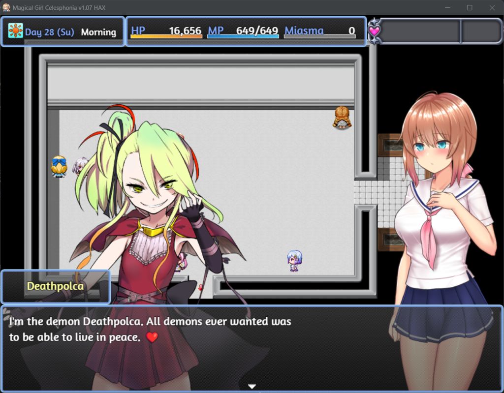 >>564118076It's tough if you go straight from the starting dungeon into checking out the town into "hey, friends have an interaction, let's check that out."I was trying to lose anyway to see my MC get captured and sold, so I don't really have a full perspective on that fight. But I didn't have to try hard to lose, whereas all the fights leading up to it were pretty easy.But yeah, you can get really strong and just demolish everything before it gets to do stuff.>>564119610I also still haven't messed with the full battle setting, I've been sticking to medium. So don't have the speed stuff.I'll probably try it out for a later run.