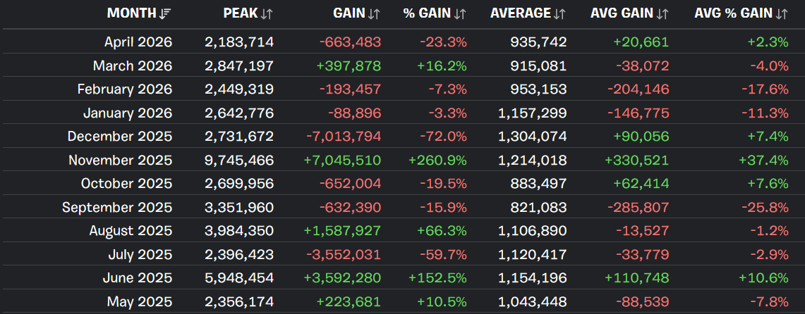 >>564027320Steal the Brainrot skews peak numbers thanks to admin abuse doing nearly 1 million concurrent for 30 minutes. You want to look at average player counts to get a fuller picture. A new season and returning to Google Play on mobile has yielded a whopping 2.3% increase from last month (and down 17% from last April).