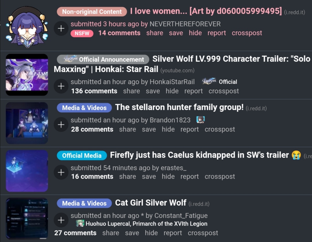 >>564029410You can tell they are propping up silver wolf out of pure obligation to have something for the anniversary, she's not a dev favorite. Her shilling is soulless compared to the devs trying to share something they also loved.