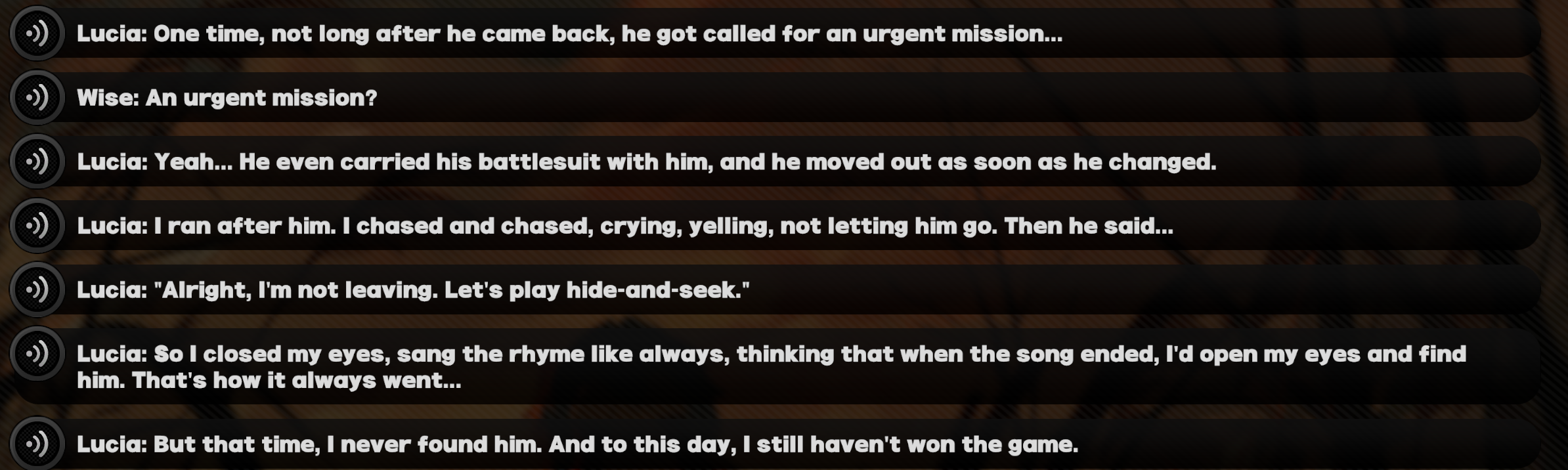 >>564035087Anon, this isn't happen with SS quests.Zhao literally got zero character quest during her own banner because the devs glazing on the new VH non-stop.The best she got is a small panel comic and one minute cutscene with no build up.