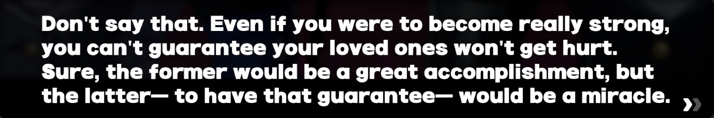 And his motivations not only make sense, but are actually something one could and maybe should strive for in reality? Goddamn, why couldn't Billy and Lighter have this much in the main story? I think I might break my "no males" rule and hang out with Manato. He's a real nigga.