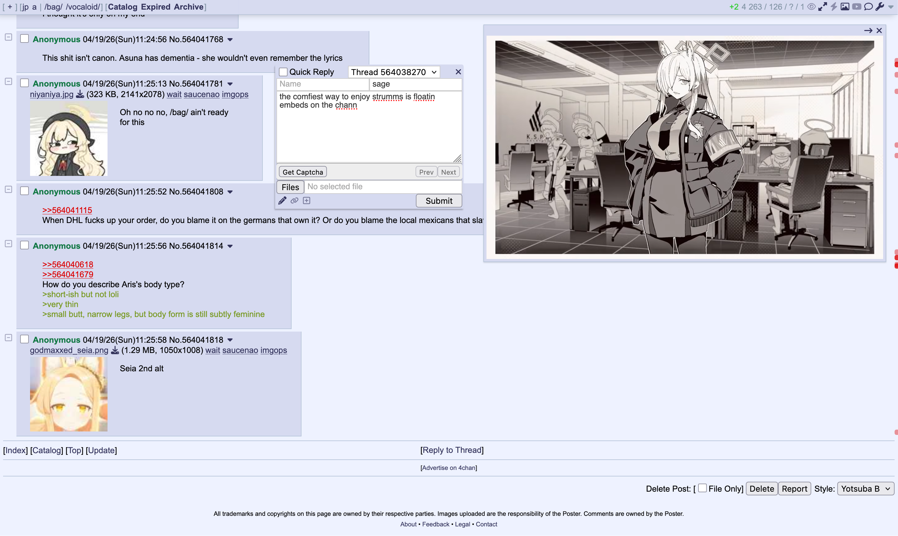 >>564039925The stream is a little more than that, posting with /bag/ is most of the fun