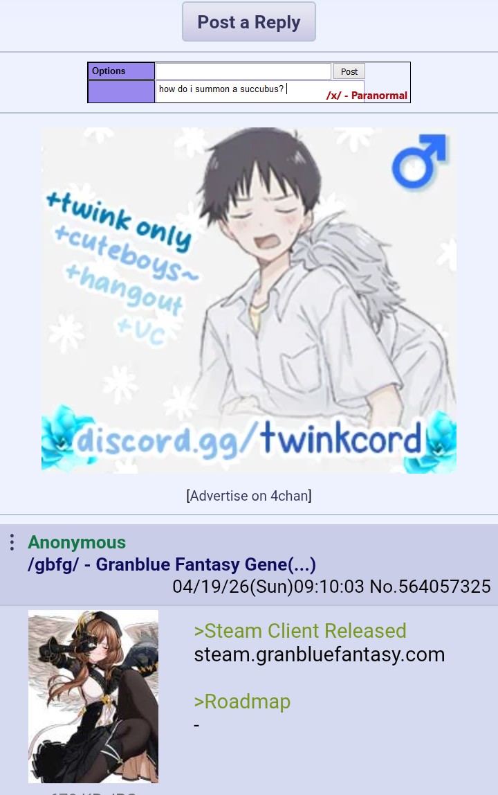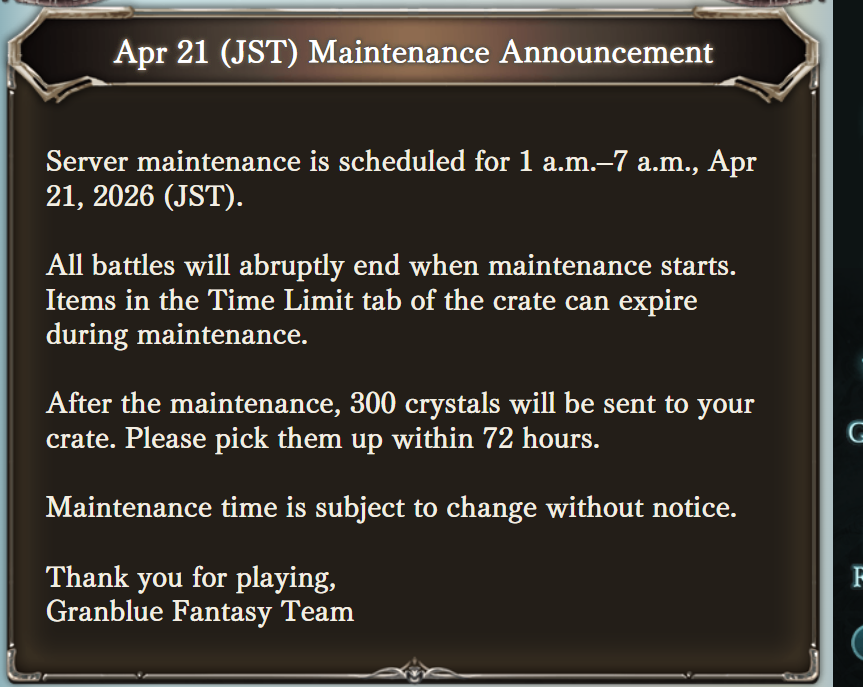 >Steam Client Releasedsteam.granbluefantasy.com>Roadmap- https://gbf.wiki/User:Umikin/Timeline>April Koregra- https://granbluefantasy.com/ja/news/9674/>April Schedule4/14 ROTB Update4/17 ...and you. added to Side Stories4/23 New MSQ Chapters & Fylkis4/23 Light/Dark Taboo raids>Future Schedule5/15 - FMA Collab6/? - Illustrious FLB & Transcendence6/21 - Unite & Fight (Fire Advantage GW)7/? - Wizard Origin>Granblue Relink: Endless Ragnarok - 7/9Latest Info>https://www.youtube.com/watch?v=NaKBXO0HHa4Maggie/Bea/Eustace/Gallanza playable>How to StartGo to https://game.granbluefantasy.jp in any Chromium-based browser>READ THE FAQ before posting - It will answer most of your questions if you're new or learninghttps://gbf.wiki/FAQ>Helpful links - These links contain useful information like important guides and other stuffGranblue Fantasy Toolbox - https://mizagbf.github.io/GBF Advanced Search - https://gbfas.ioGBF Grid and Teambuilding - https://gbfguide.comMain Story Transcript - https://calico.nekoweb.org/gbf/story/Wiki Advanced Grids - https://gbf.wiki/Advanced_Grids/gbfg/ Mega Pastebin - https://pastebin.com/xHkyQTy8/gbfg/ Crew Directory - https://rentry.org/gbfgcrewsPrevious >>563905252