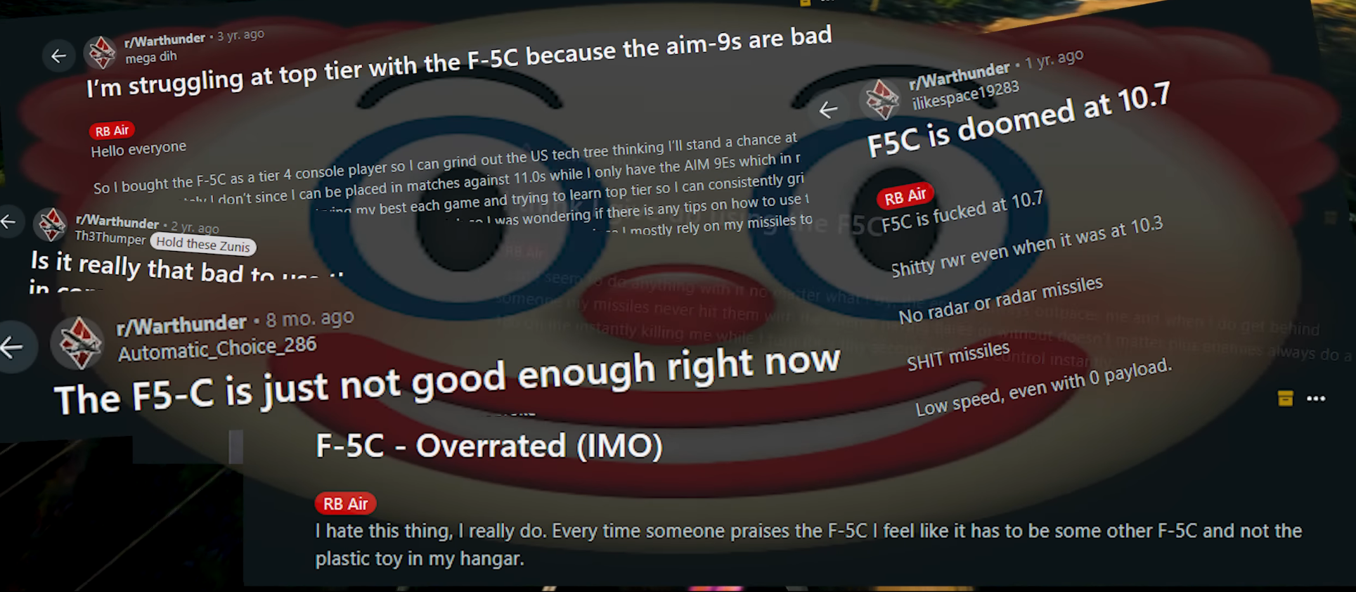 >>564275546>>nerfed the most fun part of the mode (the PVP)>>nerfing the part of the game that was supposed to be secondary to PvE SEAD>retarded take"Air RB 2.0? No, I would like an air version of the heli PVE snorefest"It is you, who has the retarded take, my melanated friendThe PvE SEAD part wasn't interesting, didn't reward you, wasn't enjoyable and most importantly meant nothing since the cheating AA respawns after a dozen minutesSince gaijin will never address the blatantly overperforming AA or the rewards for killing them you are wishing for another dead gamemode (like heli PvE)Back then the biggest gamesystem complaint was probably about bullshitbreakI really liked the state of the game in 2020, and then they added volumetric and then the game slipped down a shit covered slope to where it is today