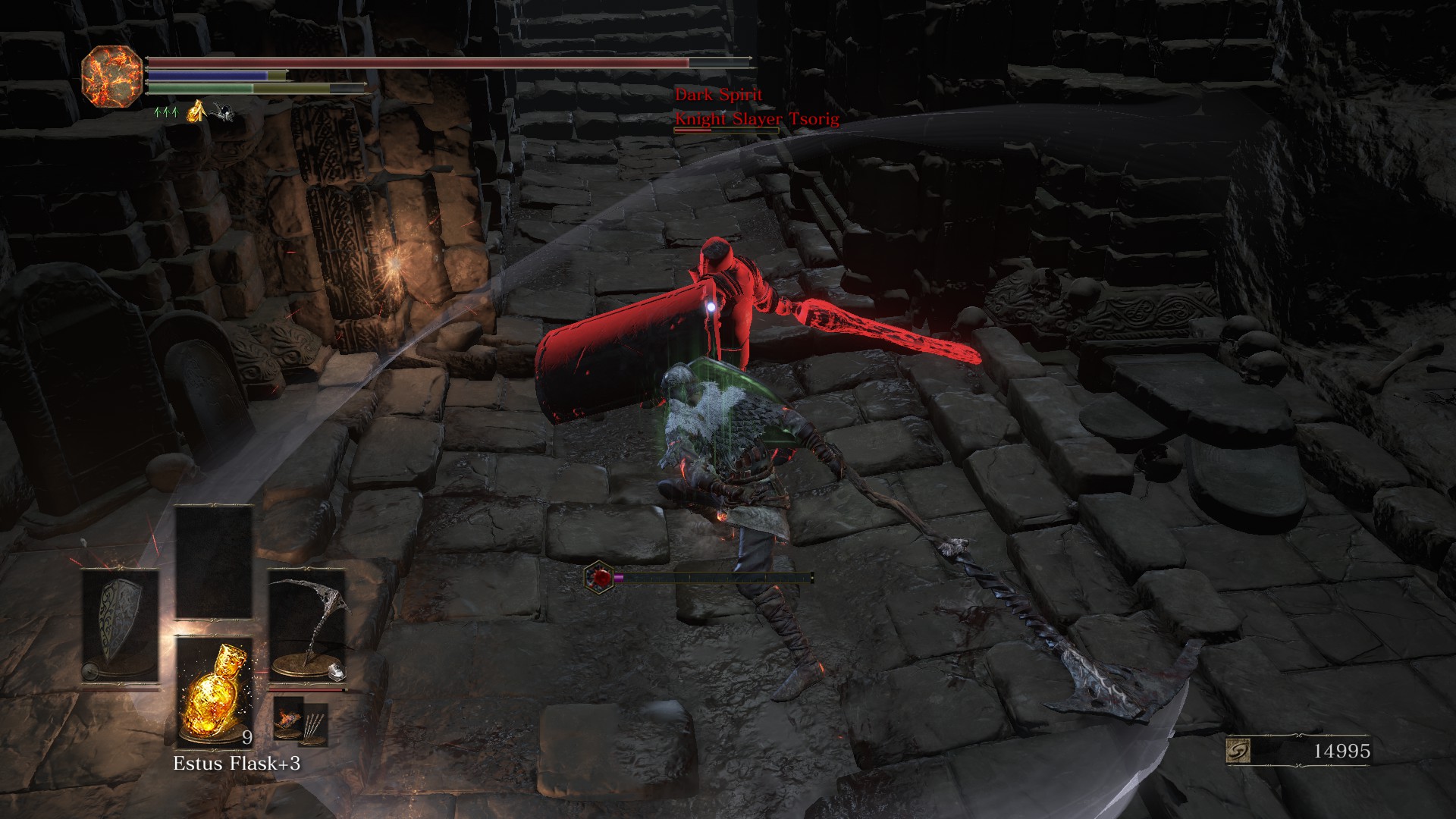I'm using it for the stance damage when 2 handing effect, that is the secret sauce that breaks him wide open. Nothing can fight back against a running r2 into an r1 with that. You stagger everything.