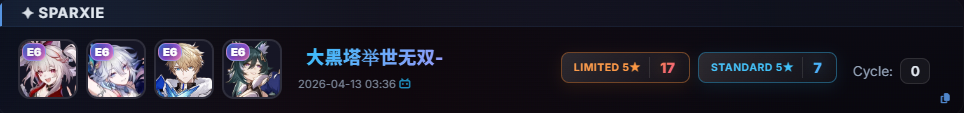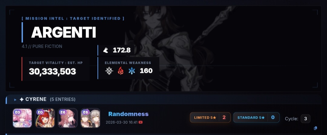 >>564105683More lies?Aglaea = 9.73Boothill = 9.70Jade = 9.20Tribbie = 9.83Mydei = 9.12Hysilens = 9.01Cerydra = 9.58Anaxa = 7.49Hyacine = 14.69Evernight = 15.10
