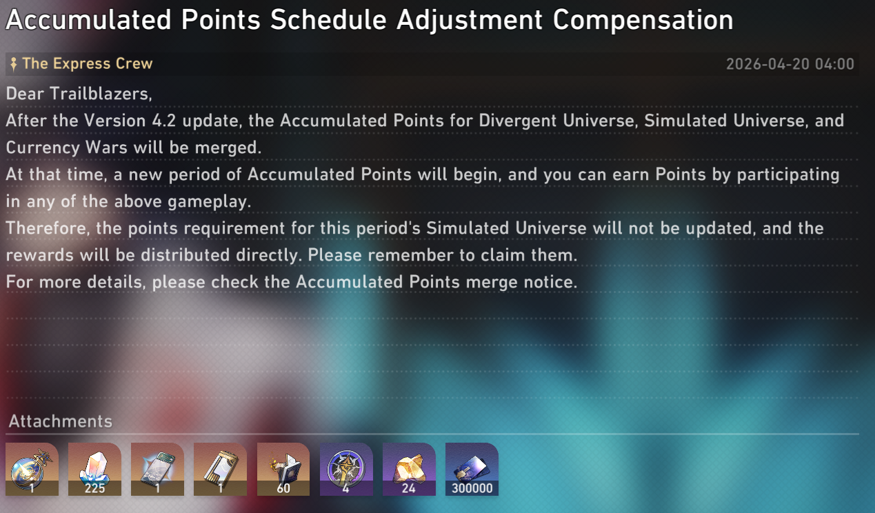 SH Family EditionPrevious: >>564069471>Download - https://hsr.hoyoverse.com/en-us/home>4.2 Preview Page - https://act.hoyoverse.com/puzzle/hkrpg/e20260410version_1370/index.html>Version 4.2 Trailer: "So Laughed the Masses"https://www.youtube.com/watch?v=NyM_seY0XKg https://www.youtube.com/watch?v=QaHPMkksn3U >Silver Wolf LV.999 Character Trailer: "Solo Maxxing"https://www.youtube.com/watch?v=va-4BypzDQo https://www.youtube.com/watch?v=LkxwwIyXJxE>3rd Anniversary Theme Song: "Side Quest King"https://www.youtube.com/watch?v=jgtPZdB9cWA https://www.youtube.com/watch?v=Ndis7_as3vg >Honkai: Star Rail x MAPPA Animation Concept Trailerhttps://www.youtube.com/watch?v=j6e_4OYVbxc https://www.youtube.com/watch?v=KM7KoZM9wKE >Improv Tour Trailer: "Beginner's Guide"https://www.youtube.com/watch?v=FArOcK-HzXohttps://www.youtube.com/watch?v=NEn6umYiiU8 >Myriad Celestia Trailer — "Scene 999: GAME NOT OVER"https://www.youtube.com/watch?v=paFelc1vM1khttps://www.youtube.com/watch?v=k9rCUlWO6y8 >Current Character Banners: Ashveil, Boothill + Asta, Moze, Misha - https://www.hoyolab.com/article/44527129>New Drip Marketing:>Mortenax Blade (5* Fire Nihility) - https://www.hoyolab.com/article/44526609>Redeemable Codes - https://hsr.hoyoverse.com/giftAceDetectiveSTARRAILGIFT>/hsrg/ Tools & Resourceshttps://rentry.org/hsrg-resources-14>/hsrg/ Thread Templatehttps://rentry.org/hsrg-thread-template-14