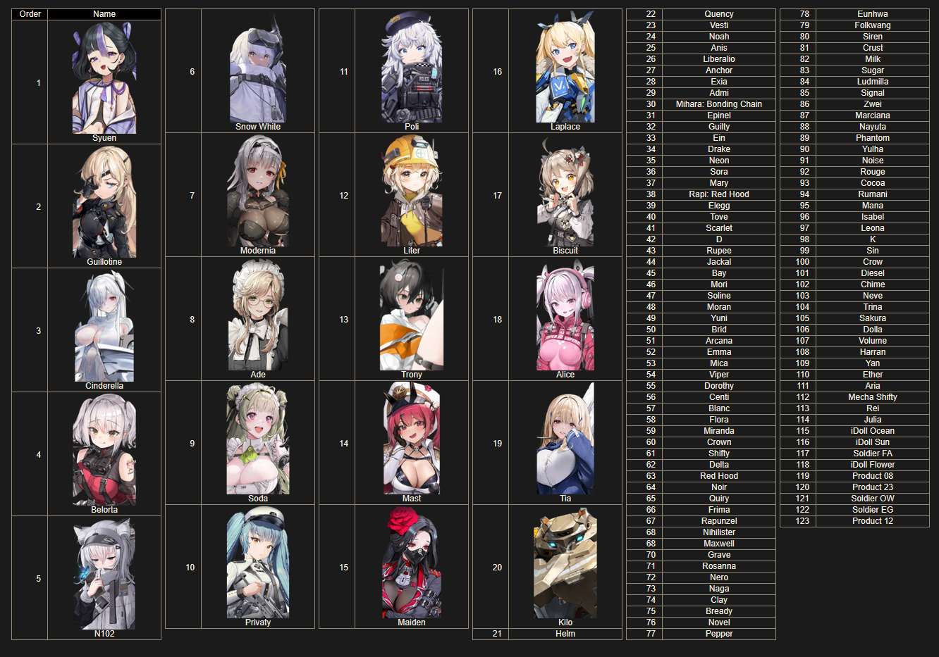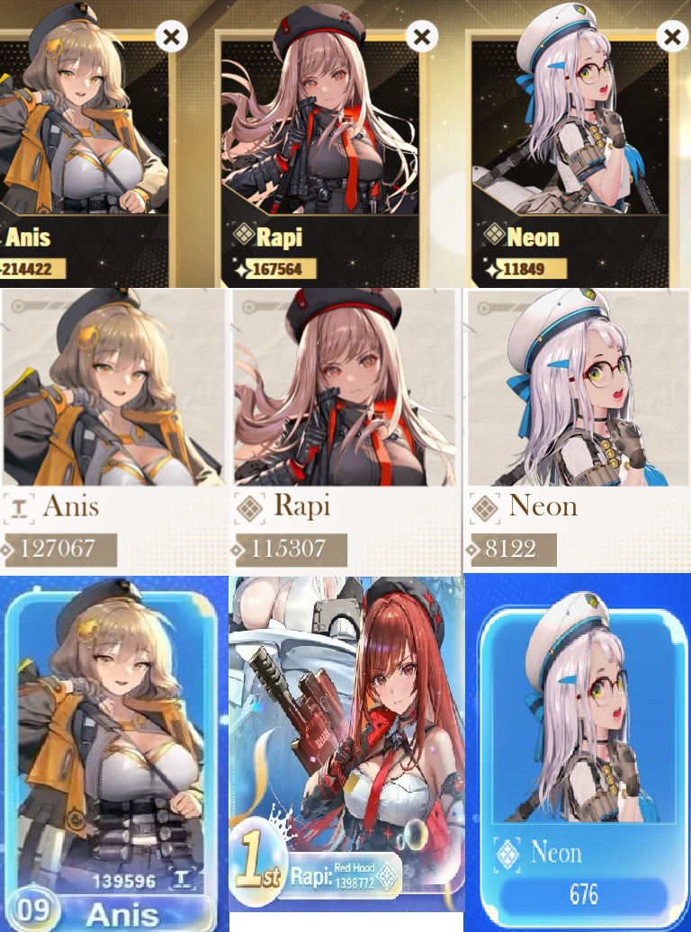 >>564097956Rapi is the oldest of the 3, since she was already a nikke when Pretty was killedAnd Neon was still a child (like 10?) shortly before Pretty was killedAnis was 17 at that time so...like 87