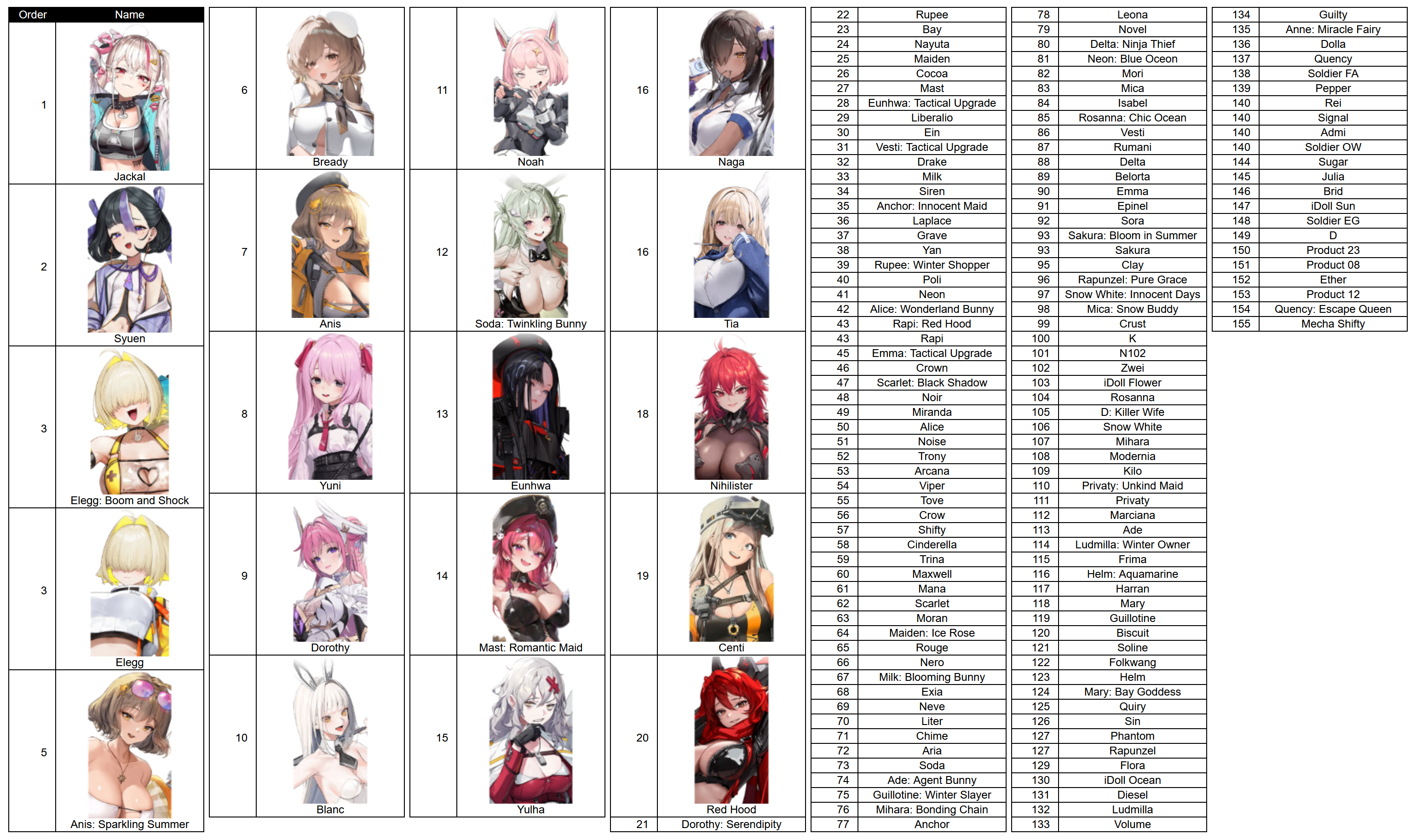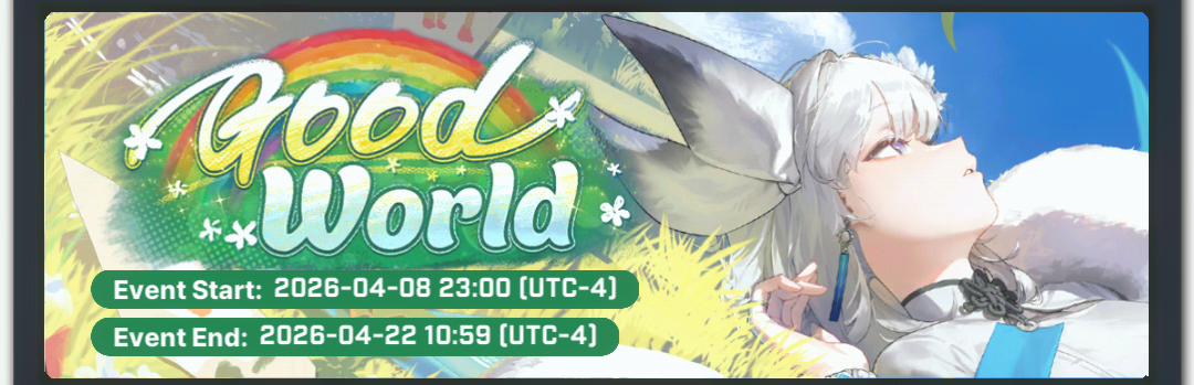 >Download - Android/iOS/PChttps://nikke-en.com/index.html>General Info/FAQ for New Playershttps://rentry.org/NikkeInfo>Additional Linkshttps://rentry.org/nikghomeALL DATES/TIMES LISTED BELOW ARE UTC+9 (KOREA TIME)>Update on April 9https://nikke-en.com/newsdetail.html?content_id=d31b0e9ba5861a4876aae35a5887fd39e511>Developer's Note: March 2026https://nikke-en.com/newsdetail.html?content_id=835e7b26a7fafa4df8ab738a81b2b9f6aa3a>Current EventsGOOD WORLD - April 9 ~ April 22>Upcoming EventsSTAR ANIS - April 23 ~ May 14>Current Special RecruitsSnow Crane - April 9 ~ April 22>Upcoming Special RecruitsAnis: Star - April 23 ~ May 14Neon: Vision Eye - April 30 ~ May 21Avistar [Free SSR] - April 23 ~ May 14>Current Costume Passes(Rerun) Drake: Villain Racer [Costume Gacha] - April 9 ~ April 22(Rerun) Liter: Cute Sunflower [Cash Shop] - April 9 ~ April 22(Rerun) Exia: Gamer [Cash Shop] - April 9 ~ April 22(Rerun) Biscuit: Spring Puppy [Cash Shop] - April 9 ~ April 22Sora: Spring Flight [Mission Pass] - April 1 ~ April 30Clay: Cheer Up Training [Login Event] - April 2 ~ April 30>Upcoming Costume PassesLiberalio: Dreaming Lake [Costume Gacha] - April 23 - TBAAnis Star: Starlight [Costume Gacha] - April 30 ~ May 21Anis Star: T.T. STAR [Costume Gacha] - TBARapi Red Hood: Shining Light [Mission Pass] - May 1 ~ May 31Dorothy: Luna Light [Event Pass] - TBA(Rerun) Grave: Beautiful You - TBA(Rerun) Snow White: White Knight - TBA(Rerun) Diesel: Midnight Strawberry - TBA(Rerun) Emma: Office Therapy - TBA(Rerun) Brid: Black Moon - TBA(Rerun) Rosanna: Ms. Dangerous - TBA>CodesMILLIONCOMMANDERS (04/30/2026)COMMANDERLOVETRIAL (05/13/2026)PROTECTARKSTAR (05/13/2026)CHEERFORANIS (05/13/2026)3ANDHALFWITHCOMMANDER (05/13/2026)ENCOUNTERONCEMORE (05/13/2026)Previous: >>564061490