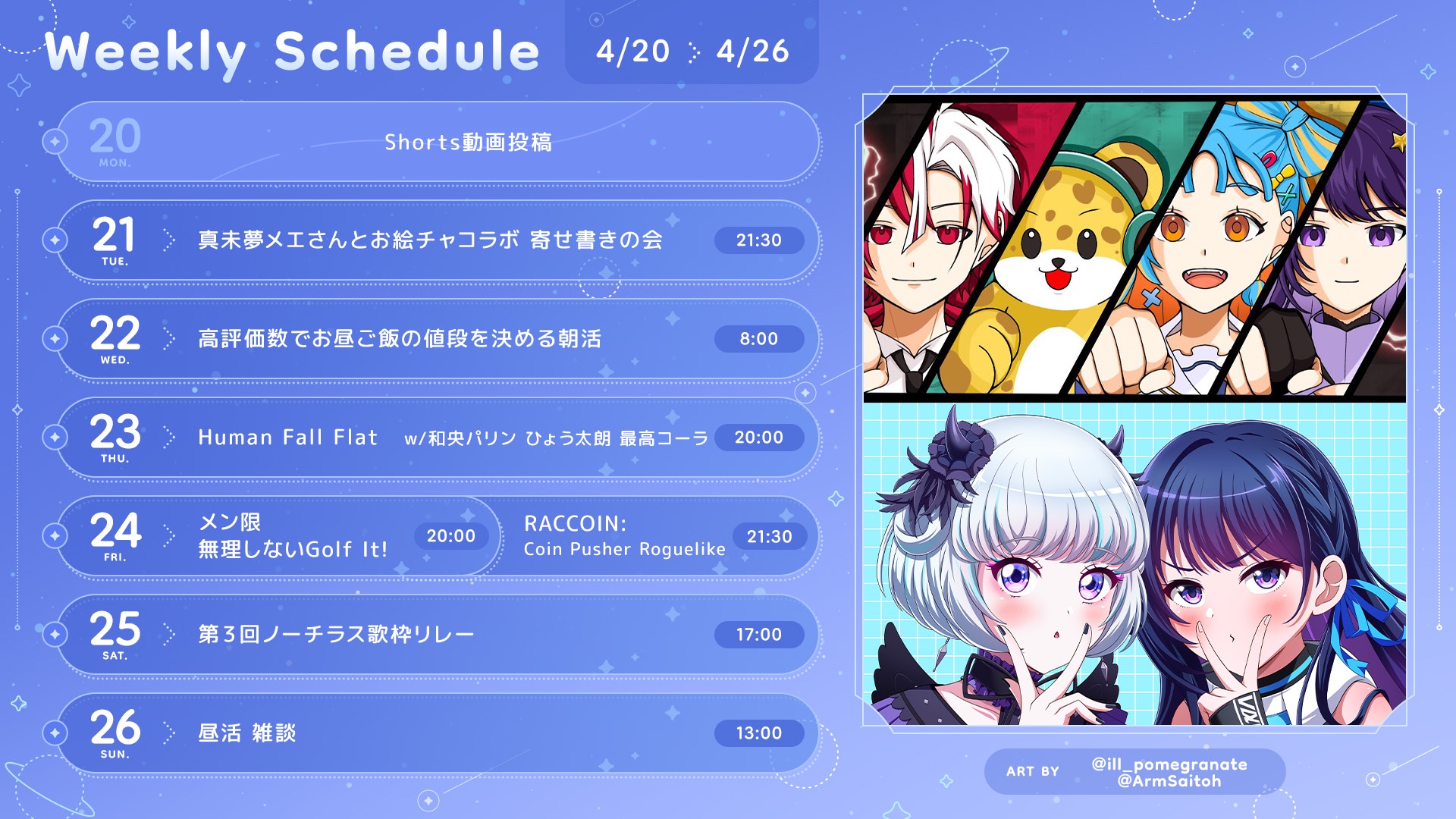 iDOLM@STER ThreadPrevious iM@S Thread: >>564038420Official website: idolmaster-official.jpJapanese news: imasnews765.comEnglish wiki: project-imas.wikiAPKs: apk.ksmz.moeOld archive of materials: sites.google.com/view/yukipobackupOld FAQ + Resource Links: pastebin.com/icRtaLvvMaterial translations + Music downloads: pastebin.com/DebHdukECharacter birthdays: pastebin.com/cLdezeDuNext thread OP: pastebin.com/A5UGxTuBHelpful Links: pastebin.com/Z70CGAsN>Event/Gacha Dates (Apr 18th): >>563941318 >>563941391- Previous News: >>564038431 >>564038447TUESDAY:Apr 21st, 7PM/9PM JST: VL Manaka x Himeno Mieru song relay streams: >>563813445Apr 21st, 9PM JST: M@STERS OF IDOL WORLD 2025 "Ai" no Kiseki R@DIO #2: >>561982372Apr 21st, 9:30PM JST: VL Cosmo x Mamimu Meh collab stream: >>563638993Apr 21st, 10PM JST: Gakuen Misuzu's "Yorunite" MV