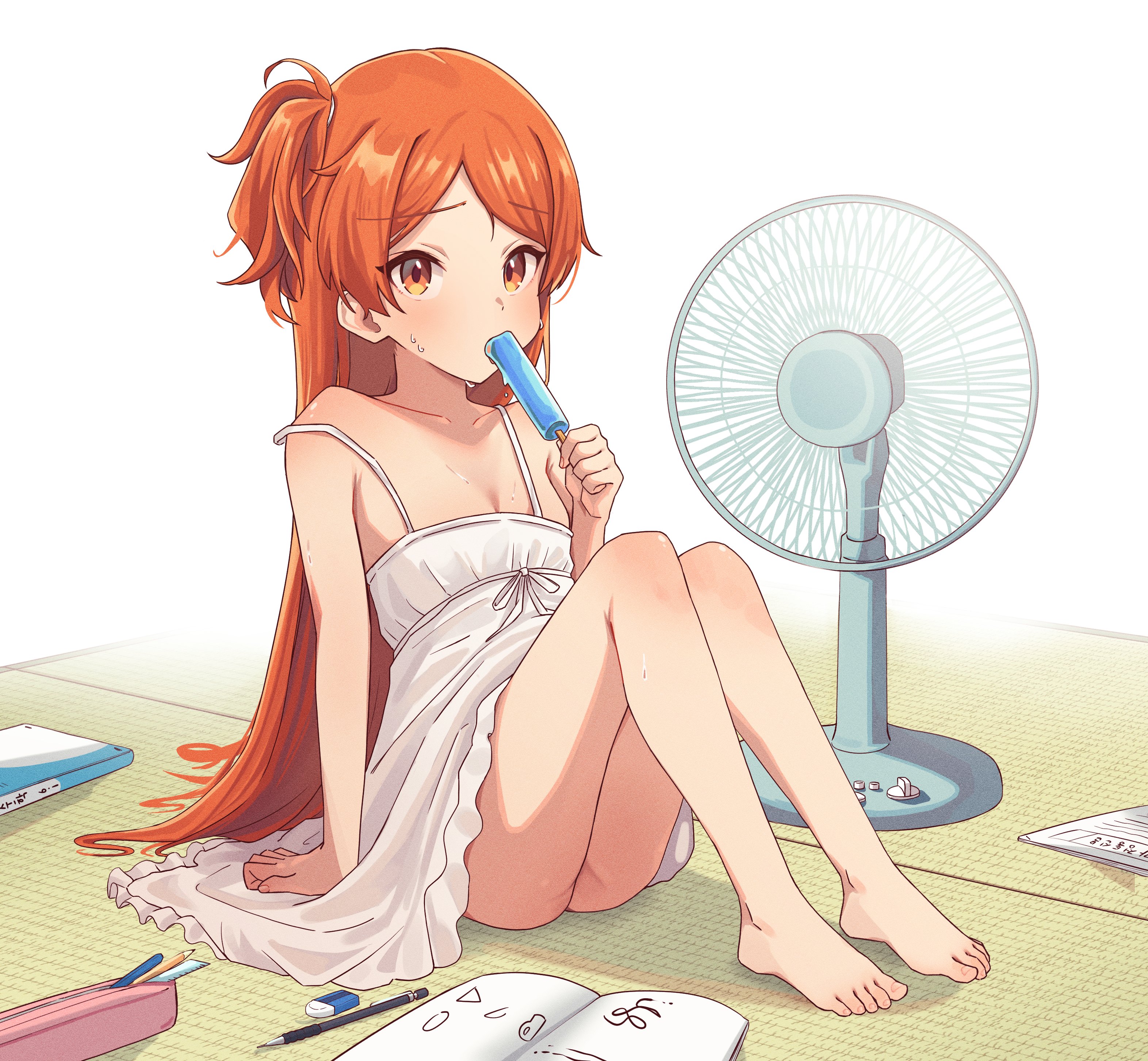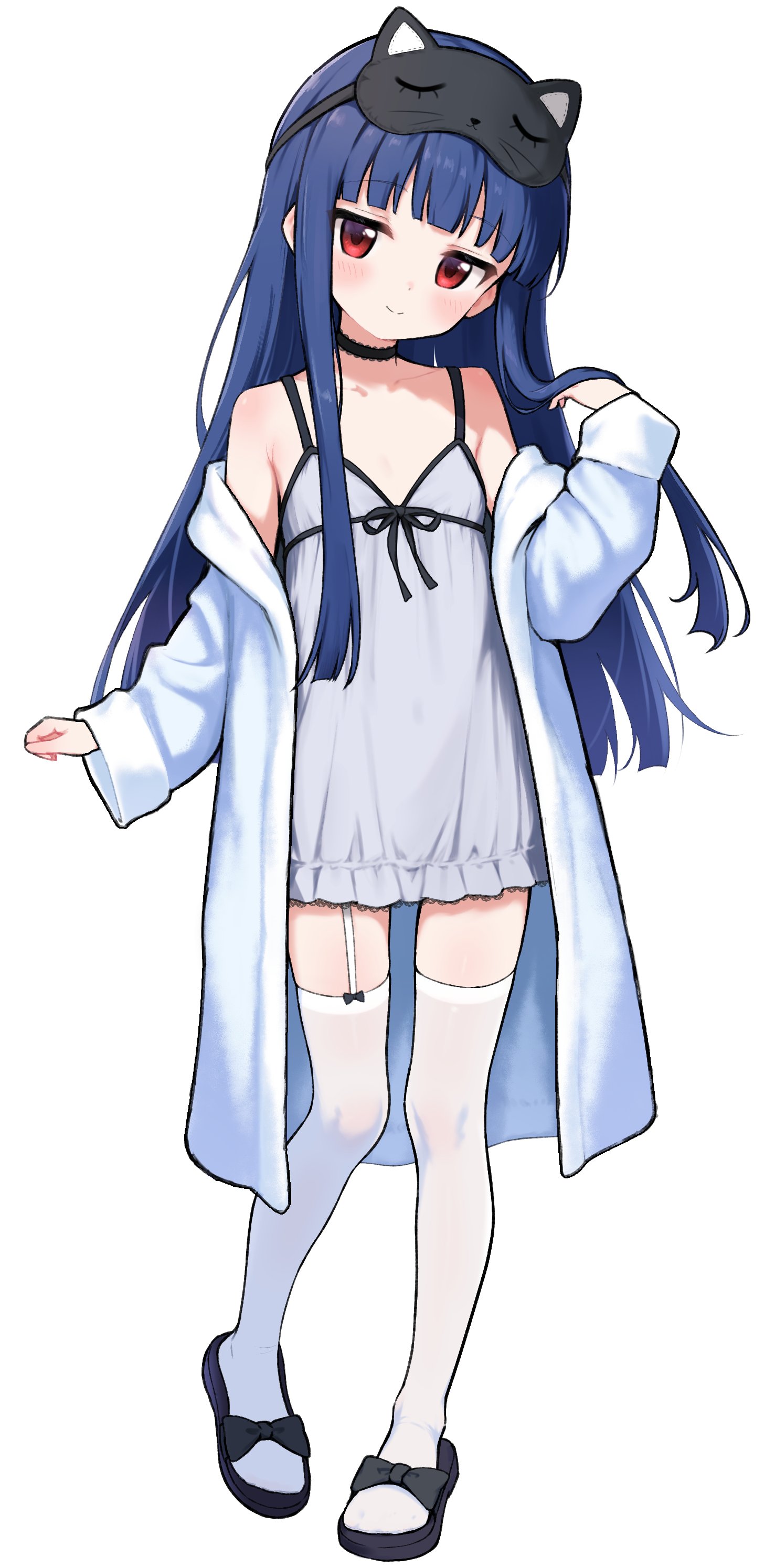 >>564085034yukimi's nightwear!!!she wears thighhighs to sleep, and the ribbon slippers are adorable covers up with a bathrobe because no pants...also imagine the silky camisole