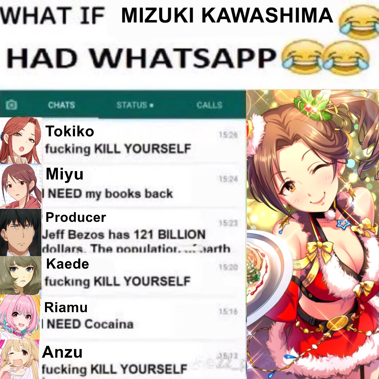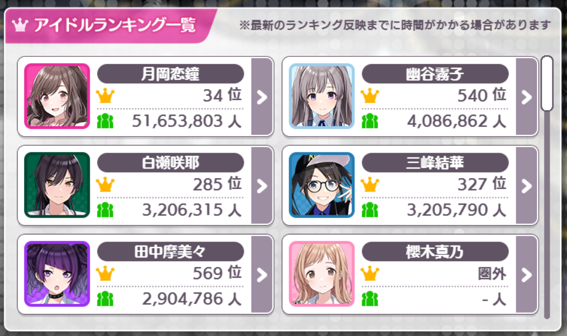 >>564111031By volume I think either Rin or Uzuki or Anzu takes that honor, and by percentage I think Shizuku is still the top
