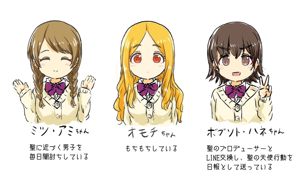 >>564160967Mano, Kogane, Kaho, Amana?A few weeks ago someone posted the correct names.