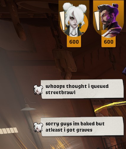 >go into street brawl as billy>ban graves>fight graves>loseI would like to have my nails forcibly ripped out of my fingers and toes than fight another Graves. Why don't bans work? I'd GLADLY wait another 30 minutes in a queue if it meant I never had to fight another graves again
