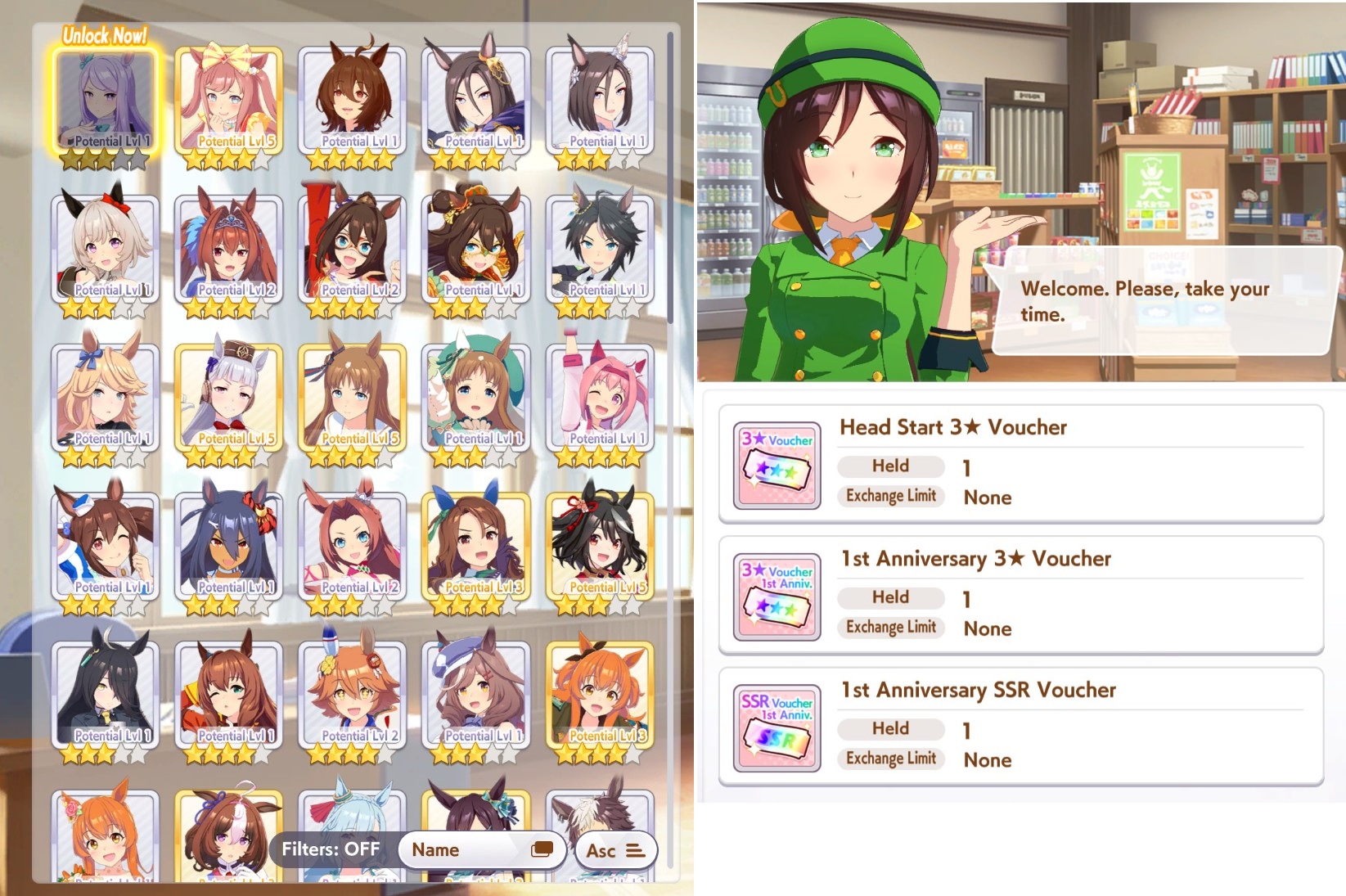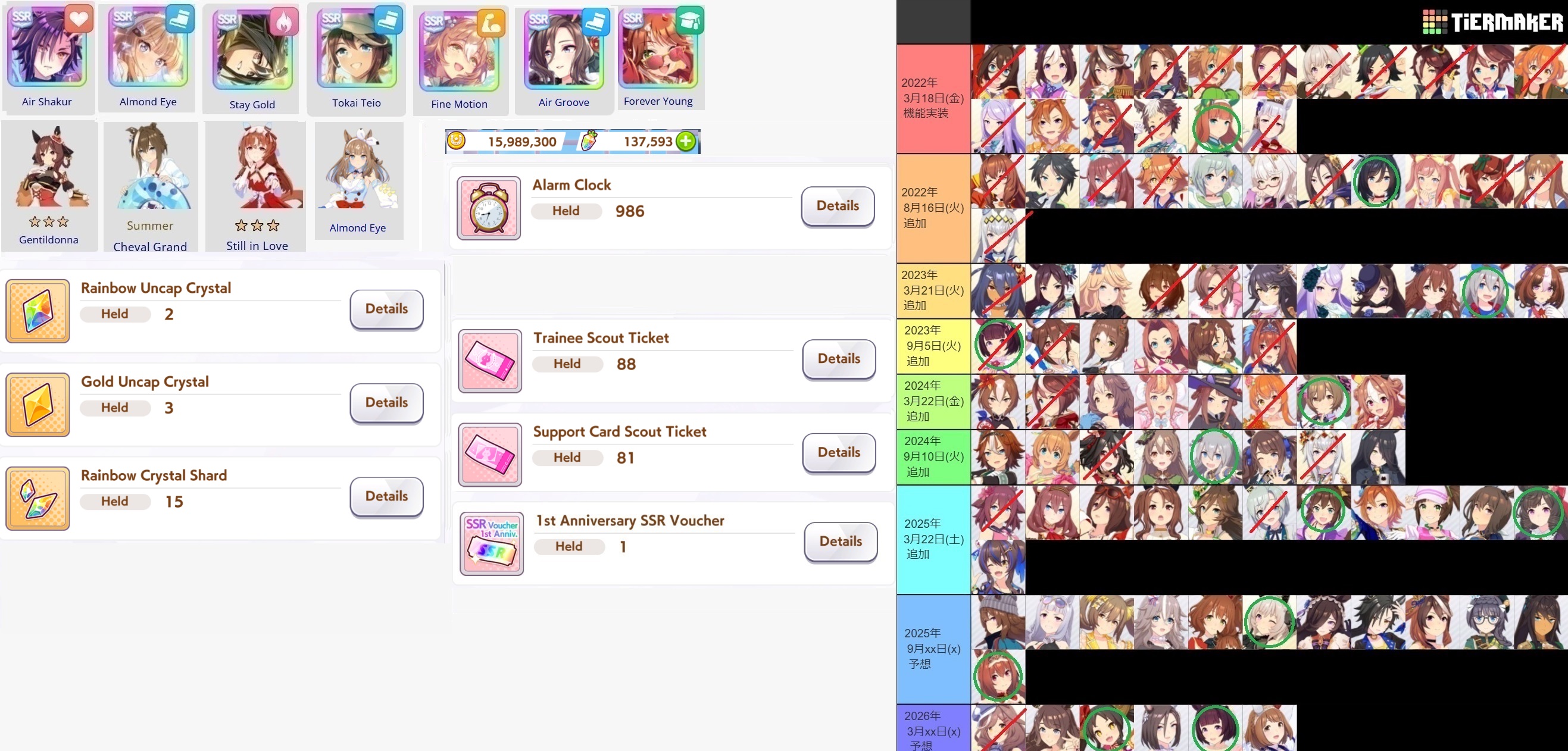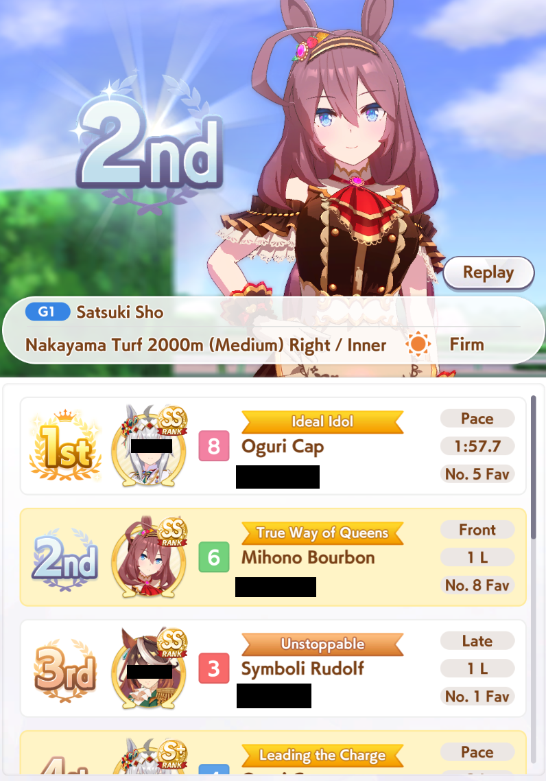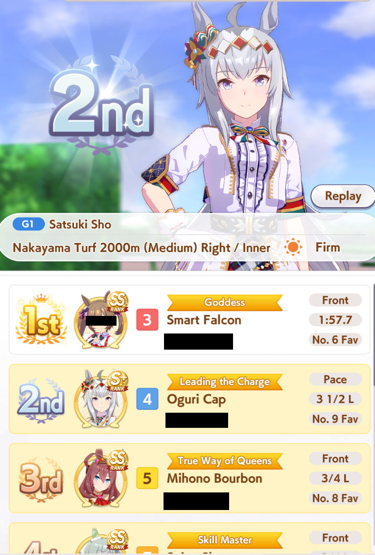 I have held my starting voucher for almost a year because i hated the idea of using it and then getting a dupe right away on my next few pulls. I got it in my head that i wont use it until i was only had one make debut-era uma left to getI farmed up enough daily races to get MacKween, which leaves only Raisu left (also base Oguri but i have XOguri which still kinda counts)I no longer have any farm target for the daily races and can only farm dupes..