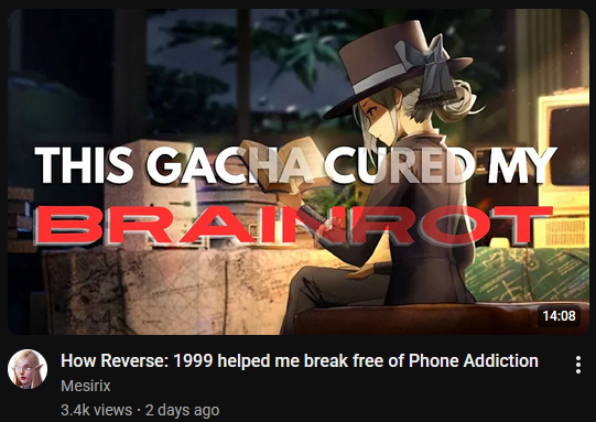 Previous Era: >>564040503>General InfoReverse: 1999 is a turn-based RPG gacha with gameplay revolving around the use of spell cards. The game focuses on storytelling, with a rich main story mode and frequent side story events. The game is fully voiced in 4 languages, with English as the primary one. There are no PvP elements, so you can play at your own pace.Daily reset is at 5AM UTC-5CN 3.4 - http://youtu.be/lWQ4YSOZneg / http://youtu.be/7Uix021yVBECN 3.5 - http://youtu.be/x6a8HUxHyGwCN 3.6 - http://youtu.be/MuGYHKb72EMCN 3.7 - http://youtu.be/BIlvzpZEOPg04/16 - 05/25 | SPRING UNENDING>Current Content03/05 - 05/28 | The Syndrome of Silence: Vol. 204/16 - 05/28 | Paper Heron - Spring Comes Slowly04/16 - 05/28 | Laplace's Internal Forum04/16 - 05/28 | Greetings from the Suitcase04/16 - 05/28 | Mane's Bulletin04/16 - 05/28 | Musae's Arcade (New Multiplayer)04/16 - 05/28 | Tides of Thought>Upcoming Content05/01 - 05/11 | 2x [The Poussiere] Rewards05/01 - 05/15 | Getian - A Song Once Heard05/01 - 05/28 | Pre-Storm Protocol v305/07 - 05/28 | Cheng Heguang - To Slay a Tiger>Current Banners04/04 - 05/28 | ◉ | 10x10 FREE SUMMONS04/07 - 04/21 | ⟳ | Hissabeth (Plant)04/16 - 05/18 | ⨉ | Pick 2, 70% Rate-Up04/16 - 05/28 | ◷ | Paper Heron (Plant) http://youtu.be/vlw5IWHMPys | http://youtu.be/8KWBtFwvS8k04/16 - 05/28 | ◈ | Euphoria Rate-Up 1x100%: 6, A Knight, An-an Lee, Regulus, Sotheby, Tooth Fairy, Voyager, Willow>Upcoming Banners04/21 - 05/05 | ⟳ | Rubuska (Mineral)05/01 - 05/22 | ⧖ | Liang Yue (Star)05/01 - 05/22 | ⧖ | Anjo Nala / Jiu Niangzi / Lucy05/07 - 05/28 | ※ | Cheng Heguang (Star) http://youtu.be/fqbrZaKfRDA>[ Download ] http://re1999.bluepoch.com | http://store.steampowered.com/app/3092660>[ Resources ] http://rentry.org/1999-resources>[ Merchandise ] http://reverse1999.store>Codes1999GIFT, 5YRBRF9, GachaGaming1999, NewScars, 2.5AnnivCelebration, GatetoLongevity, SpecialReport, ImmortalBurden