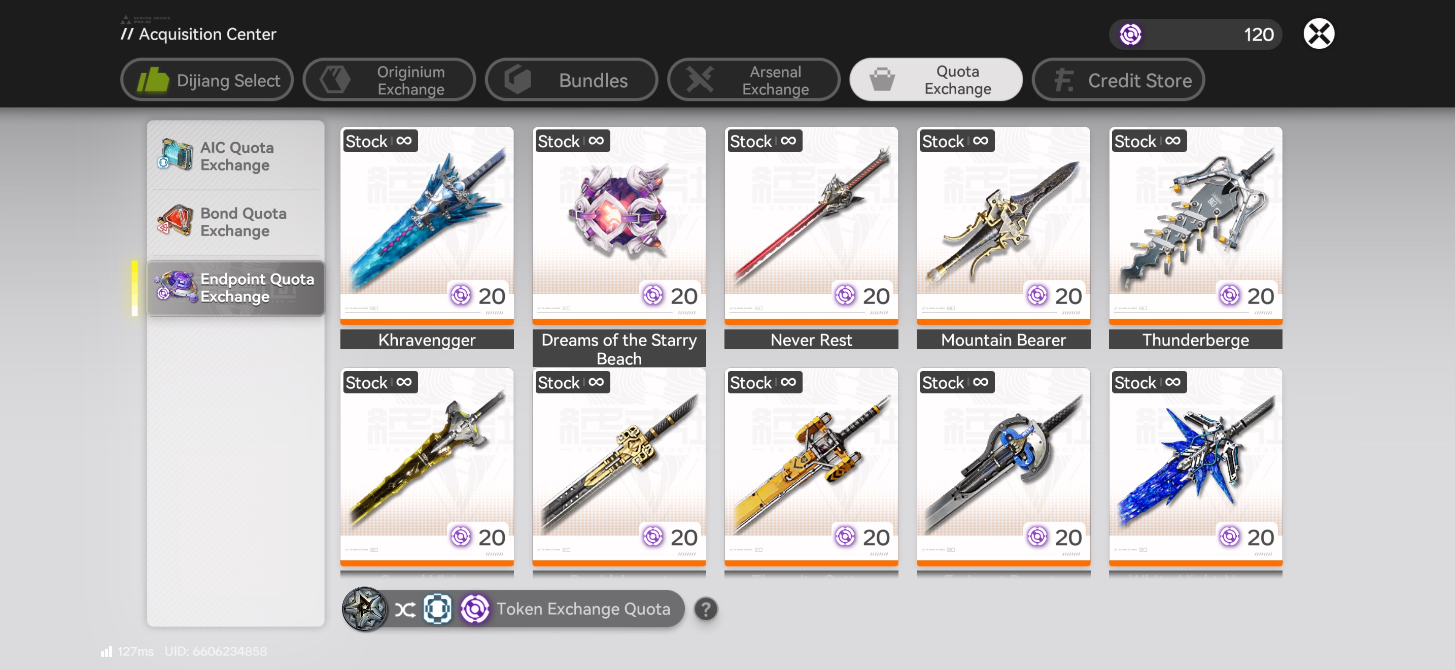 Wtf are you supposed to do with Endpoint Quotas if you already maxed every weapon in the game??Worthless currency. There is nothing you can spend it on. Get it together.