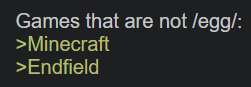 >>564156683(6 or 7) out of 10 is a fair rating.I'm in the camp where I won't ever play Genshin, ZZZ, or Starrail again, even if you paid me.But I will play Endfield daily for factory and character progress.