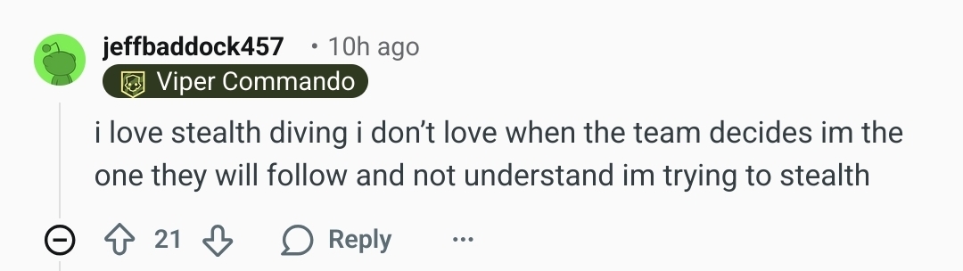 >>564151327For the sake of realism and immersion every diver after the first one should've completly randomized equipment