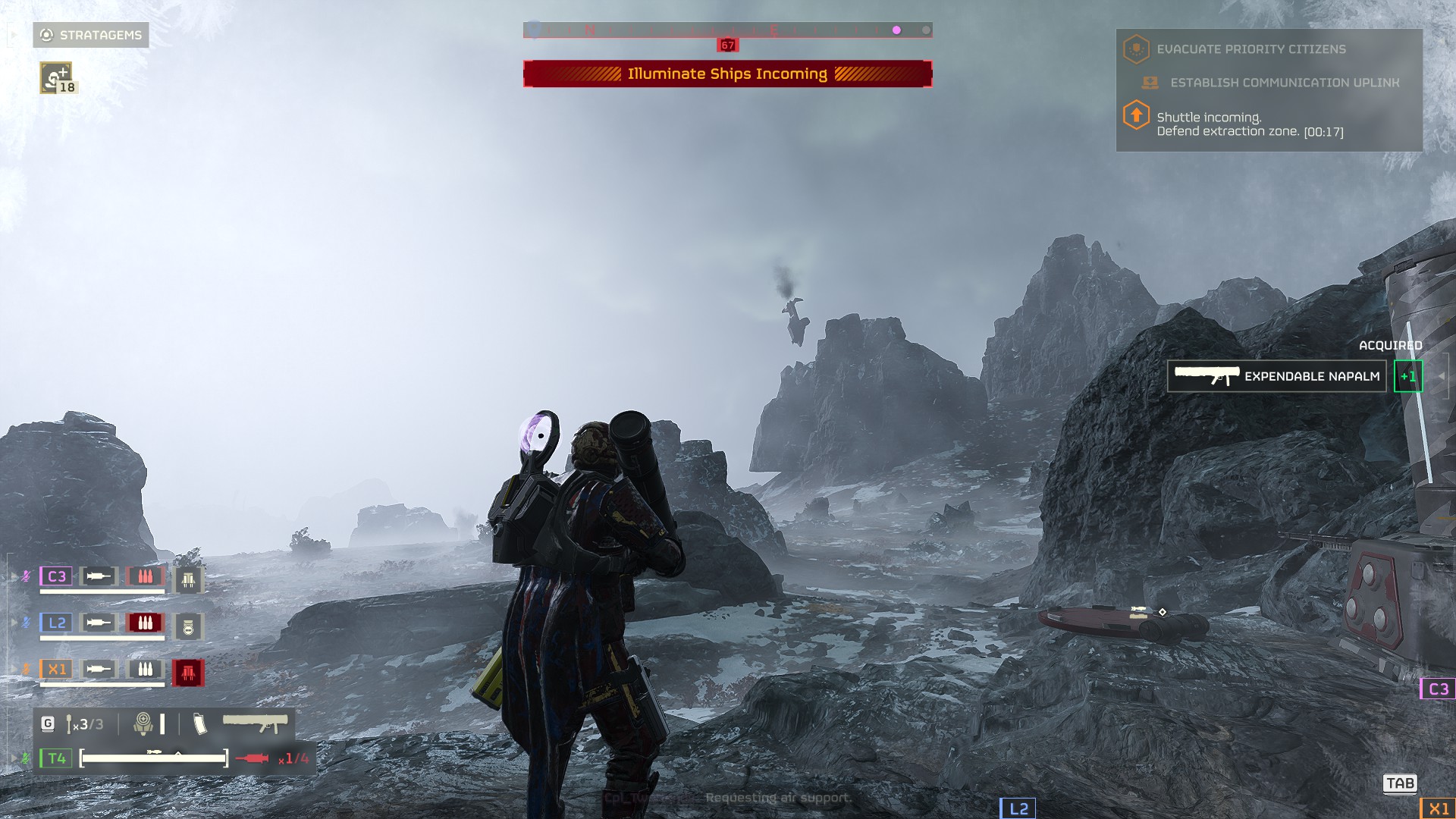 >never use smoke strike>never even bought eagle smoke bombsI was reading their stats on the wiki and they all seem to have great damage (on direct impact), sufficient demo force (probably have to get direct impacts too), and low cooldowns, have I been missing out? I'm rarely, but sometimes, taking something solely for demo force, maybe this would work ok? I tried EMS strike again, feels like the effect doesn't linger nearly long enough.also>anti-tank mines do 3000 explosive damage at AT II, and only explode for devastators and up, with a 100 second cooldownshould probably be taking these on bot platinum grabbing missions? Ran one on marfark and holy shit those guys are a big pain if you're not bringing a dedicated tool for them.