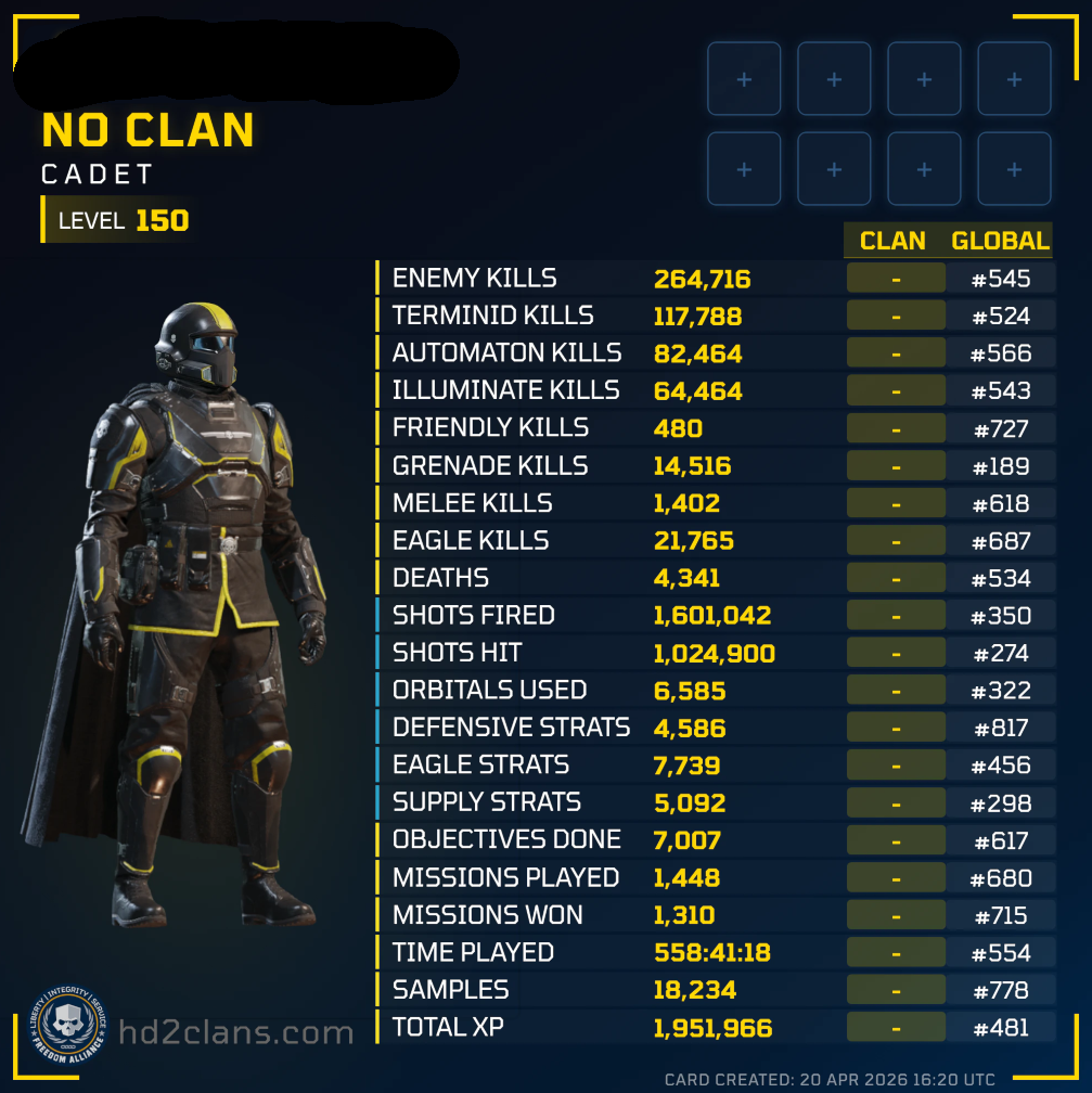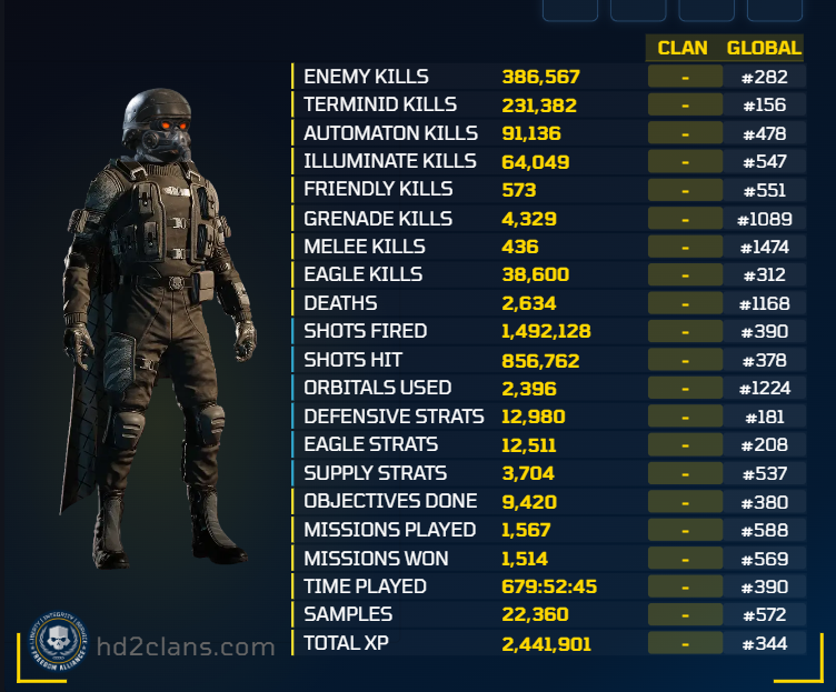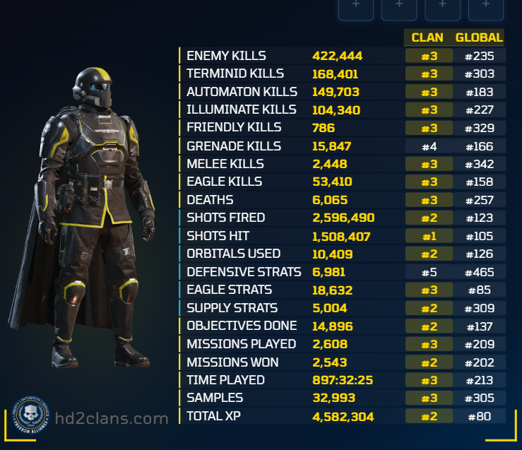 anything that is significantly above the 52 k/d of the average helldiver because honestly everyone in /hdg/ is absolutely better than any random or elite clan larper.