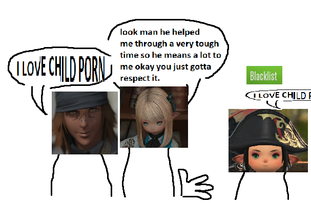 Can you imagine if FFXIV was unmoderated?>Sprout loads into Limsa after finishing the tutorial>"Hey kid, wanna throat my futa cock?" "Rape my femlala" "I NEED YOUR PISS, PLEASE"