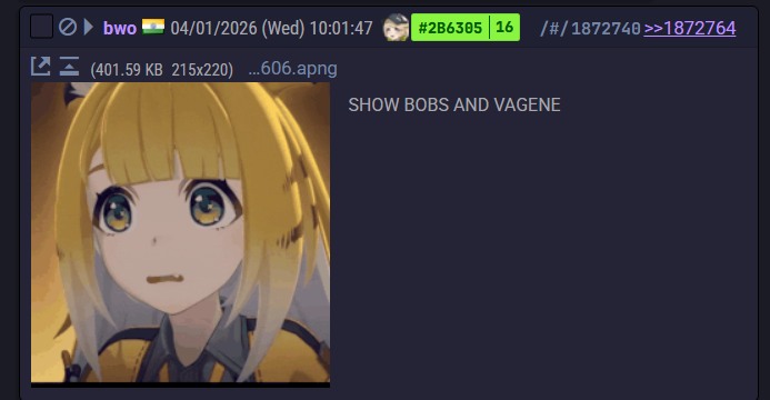 [a / b / c / d / e / f / g / gif / h / hr / k / m / o / p / r / s / t / u / v / vg / vm / vmg / vr / vrpg / vst / w / wg] [i / ic] [r9k / s4s / vip] [cm / hm / lgbt / y] [3 / aco / adv / an / bant / biz / cgl / ck / co / diy / fa / fit / gd / hc / his / int / jp / lit / mlp / mu / n / news / out / po / pol / pw / qst / sci / soc / sp / tg / toy / trv / tv / vp / vt / wsg / wsr / x / xs] [Settings] [Search] [Mobile] [Home]