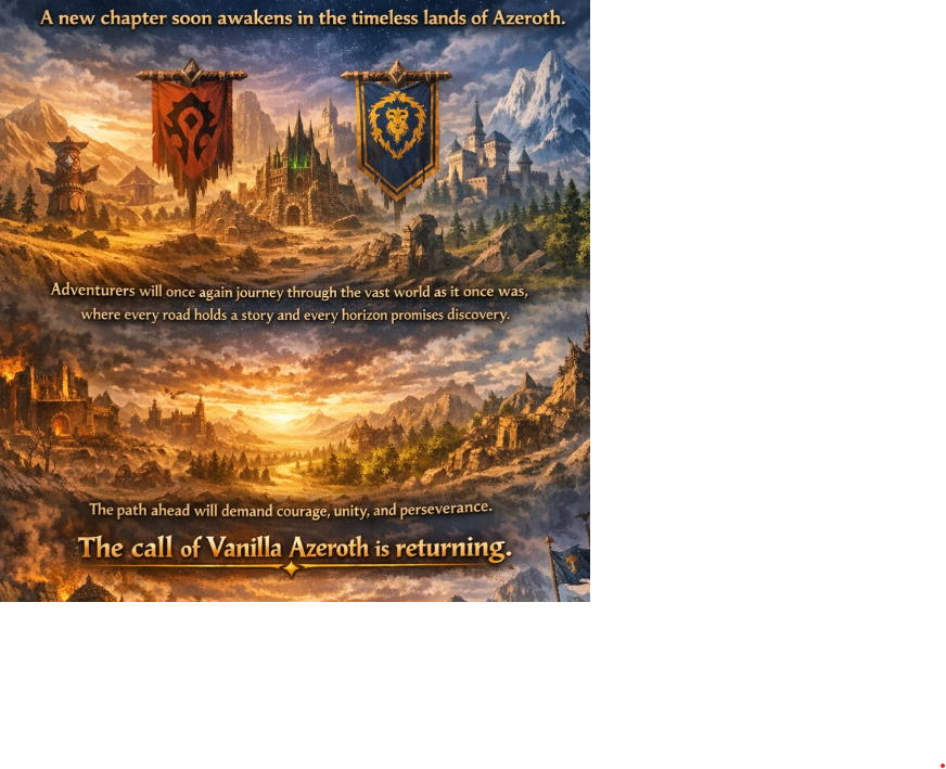 The call of Vanilla Azeroth is returning.On Saturday, May 9th, 2026, the gates reopen and a reborned legend begins again. Kronos Fresh rises untouched, unforgiving, and true to the spirit of Azeroth as it once was.