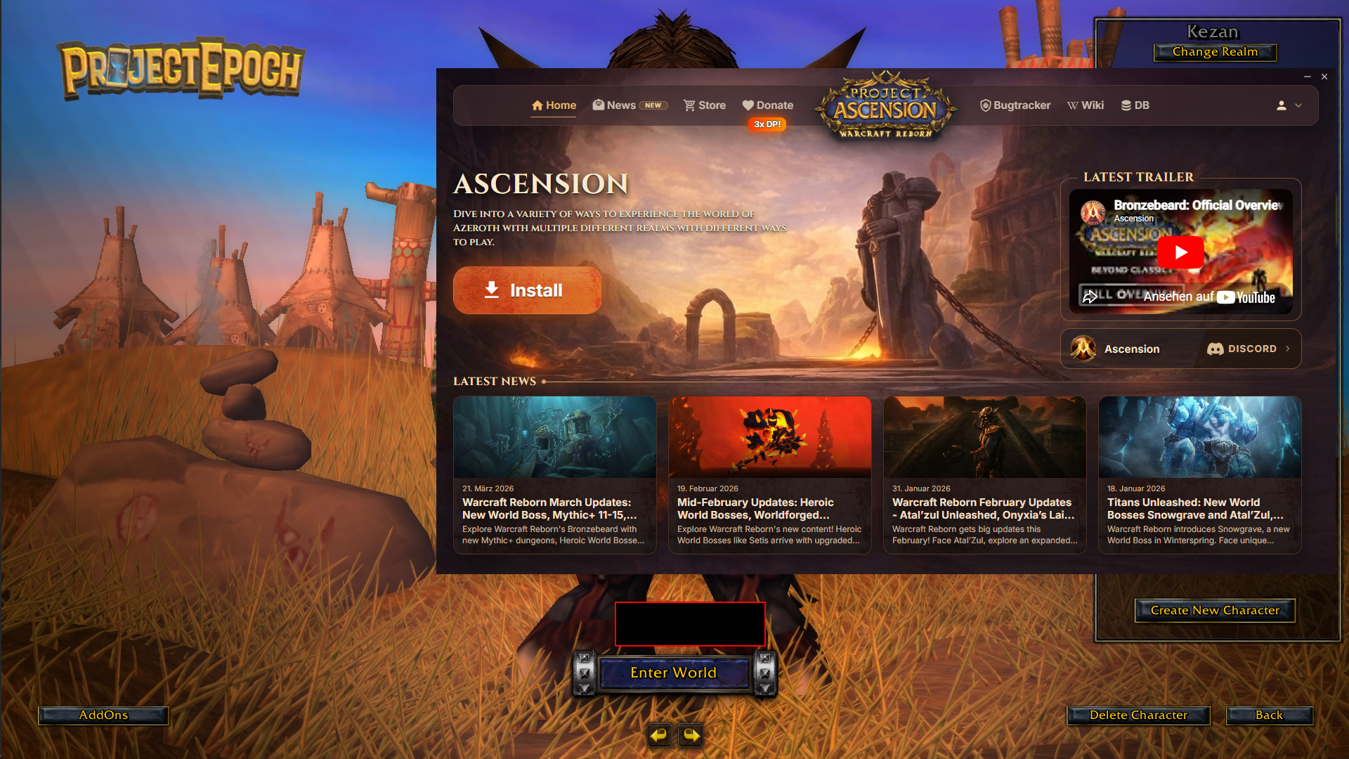 >If Epoch is the only Ascension game you plan to play, do NOT switch games after selecting Epoch in the launcher. Doing so may force you to install Ascension unnecessarilylol