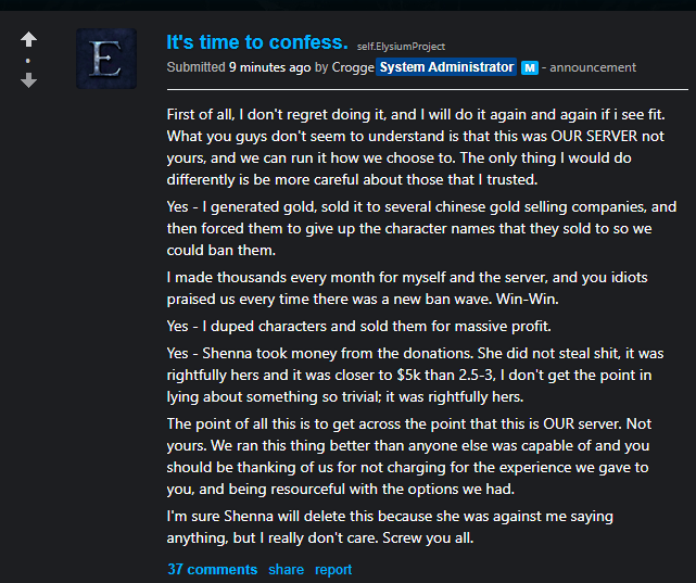 >>564194950Given the state of their in-game shop, it was comical at best.Using EQ emulated servers as an example of a similar product when none of them profit from their servers is hilarious.