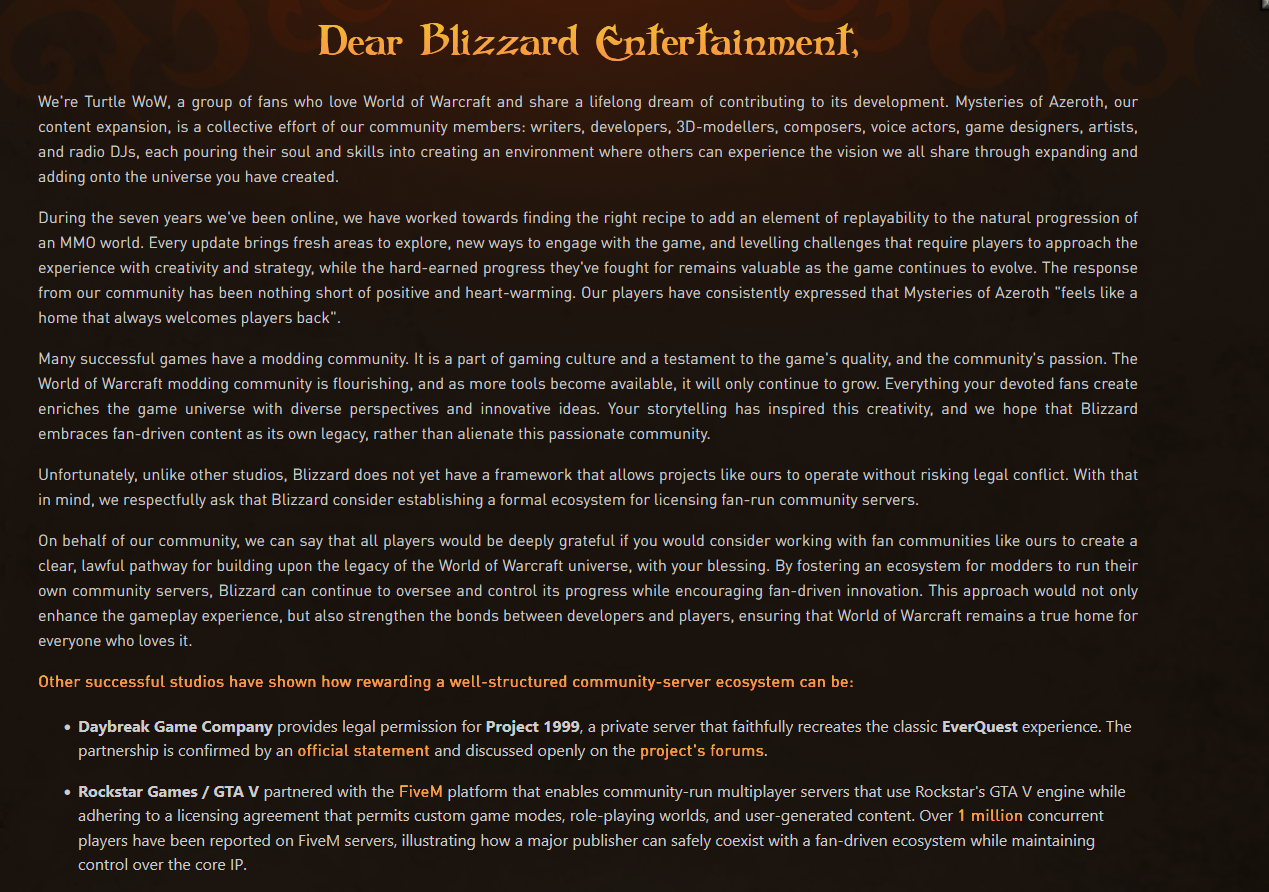 >>564169559private server general where we discuss private servers of all games not just warcraft.>>564169104They should just do the whack-a-mole thing I mentioned some threads ago.