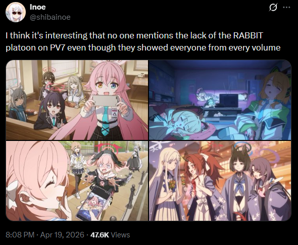 >>564169682>>564169691I wrote possibly because yeah she might just be a product of the collective faith of Kivotos' students in the GSC president and at no fault of her own, but no matter what she disappears in the end so that Kivotos can return to normalit will all be very sad and dramatic and the target audience will eat it upsensei will grovel and cry again but won't do anything to prevent it get used to it, it's the new normal