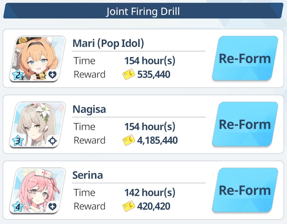 Previous Thread: >>564155897>Guides, Resources and useful links:https://rentry.org/bagguides>/bag/Circles/Clubs/Friends:https://rentry.org/holdingthebag>4koma, Manga, Side Content, PVs & Shortshttps://rentry.org/bacontent>>(JP) – JST>Banners:>4/21 After Maint – 5/6 10:59Niko (Limited)Kurumi (Limited)Otogi (Welfare)>News:Livestream Summary: https://rentry.org/4chanBagStream0419Patch notes: https://bluearchive.jp/news/newsJump/651>Events:Special Operation: Lore Pursuit – 4/21 After Maint – 5/6 10:59>Content:Total Assault: Kaiten (Urban) – 4/29 11:00 – 5/6 3:59Joint Firing Drill (Defense) – 5/6 11:00 – 5/13 3:59Limit Break Assault: Chokmah (Outdoor – w/Heavy Armor) – 4/22 11:00 – 5/27 3:592x Lesson/Scrimmage – 4/21 4:00 – 4/29 3:592x Account EXP – 4/25 4:00 – 4/27 3:592x Normal – 4/29 4:00 – 5/6 3:592x Account EXP – 5/2 4:00 – 5/7 3:592x Bounty – 5/6 4:00 – 5/13 3:592x Commissions – 5/13 4:00 – 5/20 3:592x Hard – 5/20 4:00 – 5/27 3:59>>(GLOBAL) – UTC>Banners:>4/21 After Maint – 4/28 1:59Mari (Pop Idol – Limited)Sakurako (Pop Idol – Limited)Mine (Pop Idol – Welfare)KahoKazusa>News:Patch notes: https://forum.nexon.com/bluearchive-en/board_view?thread=3425677>Events:Serenade Promenade – 4/21 After Maint – 4/28 1:59Balancing Schale's Books with the General Student Council – 4/21 After Maint – 4/28 1:59My Office: https://bluearchive.nexon.com/user/myoffice>Content:Grand Assault: Kaiten (Urban – Torment w/Heavy & Light Armor) – 4/21 2:00 – 4/27 18:59Limit Break Assault: Chokmah (Field – w/Heavy Armor) – 4/8 2:00 – 4/27 18:592x Lesson/Scrimmage – 4/20 19:00 – 4/27 18:592x Bounty – 4/27 19:00 – 5/4 18:592x Account EXP – 5/1 19:00 – 5/3 18:592x Normal/Lesson – 5/4 19:00 – 5/11 18:592x Account EXP – 5/8 19:00 – 5/10 18:59