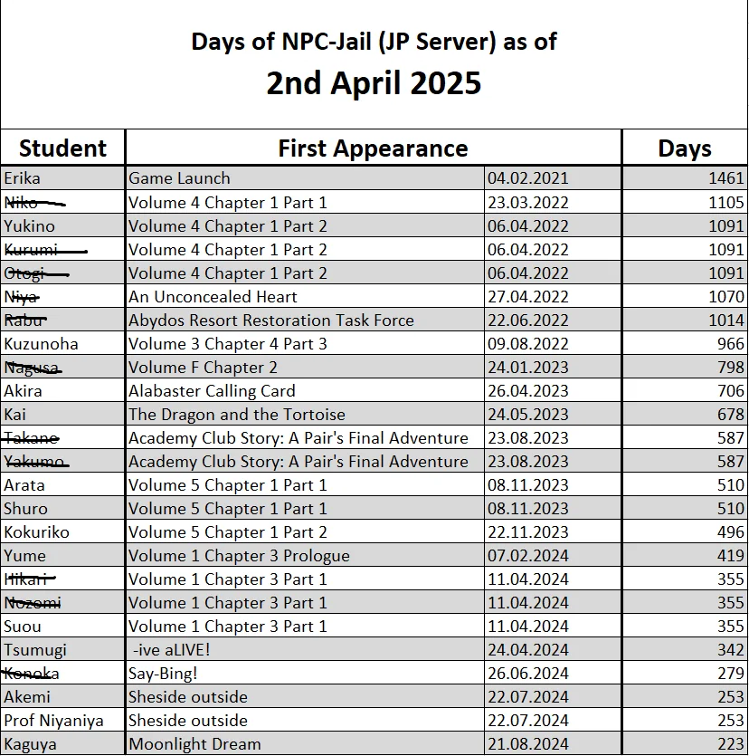 Is there an up to date NPC jail chart?