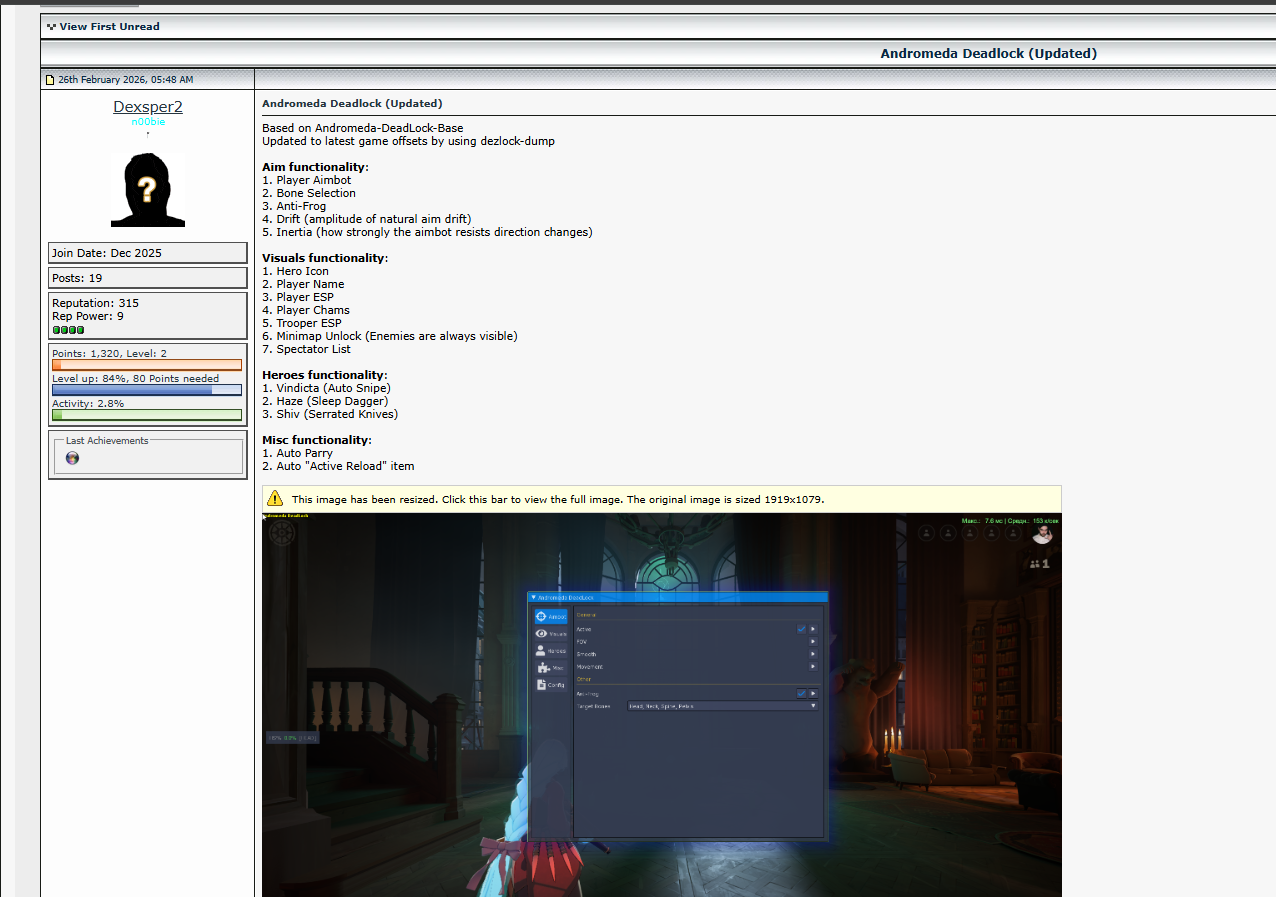 >Latest patch:https://forums.playdeadlock.com/threads/04-10-2026-update.125825/>Steam Page:https://store.steampowered.com/app/1422450/>Where to leave feedback and report bugs:https://forums.playdeadlock.com/>How do I git in?Post your Steam profile and ask. You need to accept a friend request to be invited, so don't be a sperg.>How do I git gud?Do the tutorial, get a feel for each hero in sandbox mode, explore public item builds, watch replays. Playing a Hero for the first time will put you into a lower rank game*, so don't worry about it too much.Additional Resources:>Unofficial Wikihttps://deadlock.wiki/>Collection of useful character buildshttps://deadlockmeta.com/>New Player Guidehttps://docs.google.com/document/d/1lMBE7Nli_sVJ42d-kPHjF3MBaXZdIM46gNJQC_fMGMU/>Advanced Movement Guidehttps://www.dlmovement.wiki/>Unofficial Stat Tracker (Unreliable due to API rate limits)https://statlocker.gg/https://tracklock.gg/>Unofficial Competitive Newshttps://edl.gg/>Unofficial Voiceline Viewerhttps://deadlock.vlviewer.com/Threadlocked: >>564111134