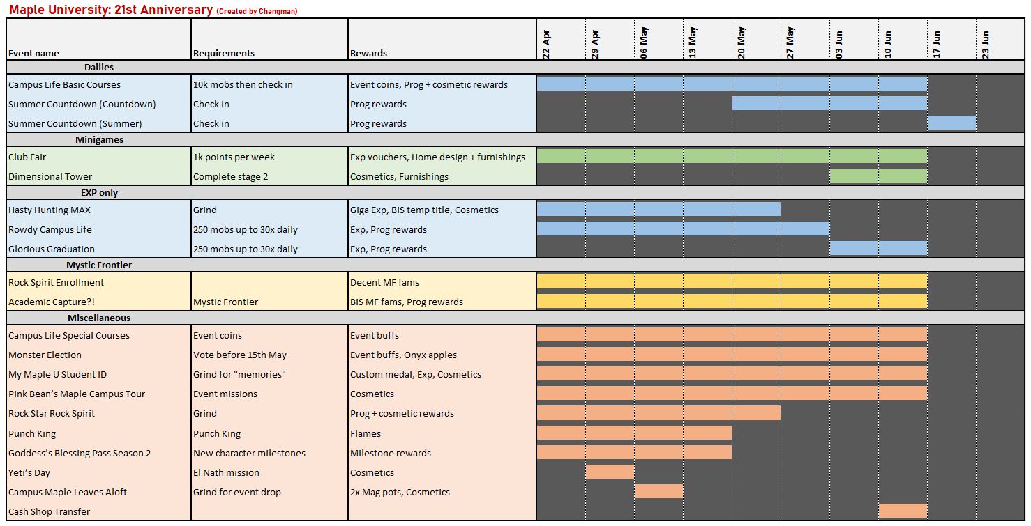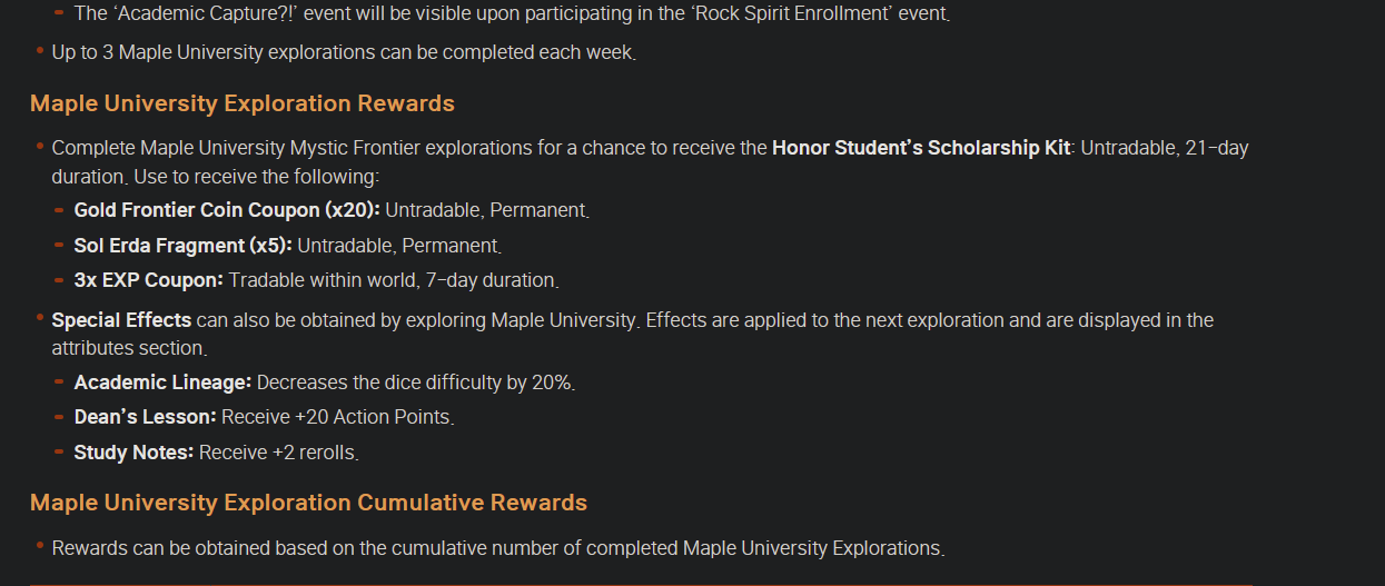 Let's hear it for the maples! editionThere are no events (there are two battle passes and the wh revamp if somehow ur still not done): https://www.nexon.com/maplestory/news/update/36809/updated-3-20-v-267-maple-story-x-one-punch-man-patch-notesSENGOKU HIGH RETURNS!!!!!: https://www.nexon.com/maplestory/news/update/39606/v-268-maple-university-21st-anniversary-update-previewThe probability thing literally does not mean anything you just want something to be mad about so inkwell gives you free shit, you would literally not notice if anything was wrong: https://orangemushroom.net/2026/04/16/kms-ver-1-2-414-maple-attack-3rd-common-core/Want to main Lara? Click here!: https://grandislibrary.com/For your browsing pleasure: https://rentry.co/msg-filtersEVERYONE WHO PLAYS THE OFFICIAL SERVERS IS SPREAD OUT!! POST YOUR IGN AND SOMEONE WILL PUT YOU IN A MAPLE TREE SO YOU CAN FALL OUT OF IT WHEN THE UPDATE COMES IN A FEW DAYS AND YOU CAN START YOUR MAPLESTORY ADVENTURE, TOGETHER! WITH A FRIEND!SCANIA - Buddy DoubleOctave and NisunobiKRONOS - Apply to ARCHIVED!! Also, whisper Felix!HYPERION - Apply to Light!!AURORA - Get with Sipr to cheat on your SAT (there IS a test required to enter maple university)Heroic CW - Apply to Kinoplex!! It might be over, but it's not joever yet!PRIVATE SERVERS - Maplestory classic hits shelves in October 2026! Relax! It won't be here for a long time! Go play Royals or Legends or Maplesaga or Artale instead! They're the same thing.Previous school kaling: >>563416219