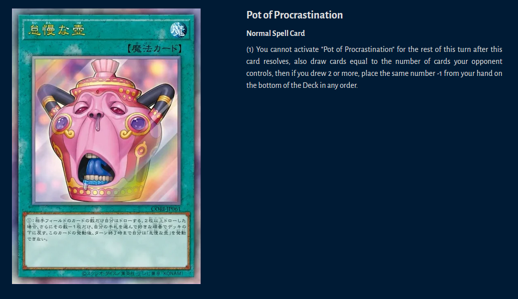 it took konami 3 years to add the basic feature of being able to see your deck mid-duel.it doesn’t matter how hard or easy something is to code, konami will only do the bare minimum for MD because retarded whales guarantee it’s one of their most profitable games anyway.