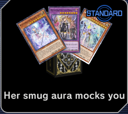 >play in Diamond rank>go 1st>normal summon Raidraptor - Mimicry Lanius (does basically nothing on the fied by itself)>opponent uses Veiler on it>wat>anyway activate Raidraptor - Pain Lanius to target Mimicry Lanius and summon it>opponent activates Killer Tune clip to synchro turn 0The """skill""" in this game is basically non-existent, metanigger will misplay and click shiny button whenever it appears and will reach high ranks quicker than a skilled player that plays rogue, what a fucking joke