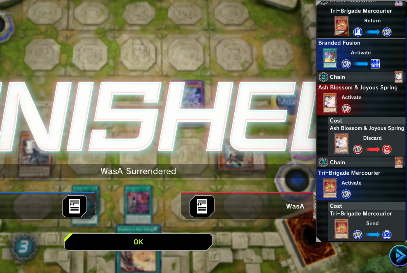Now i feel guilty i thought i was in a mirror match because of the name, icon and field and dropped dragoon and fiend-smith on my turn he was running almost pure psy-frame sorry bro.