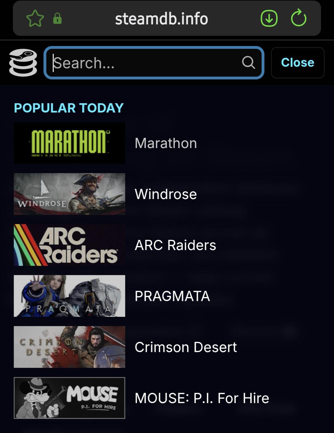 Marathon has been out for 6 weeks and it'sbeen #1 searched game on steam DB for 6 weeks People are obsessed with this games success, it's honestly kind of crazy...i can't think of another game that sat on the top of steam SB search that long.