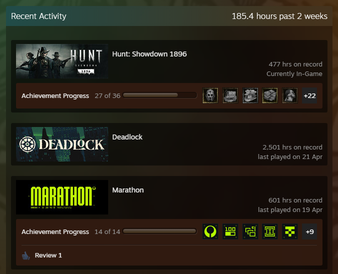 >>564314174What games did you guys play before Marathon, or that you still play alongside it?