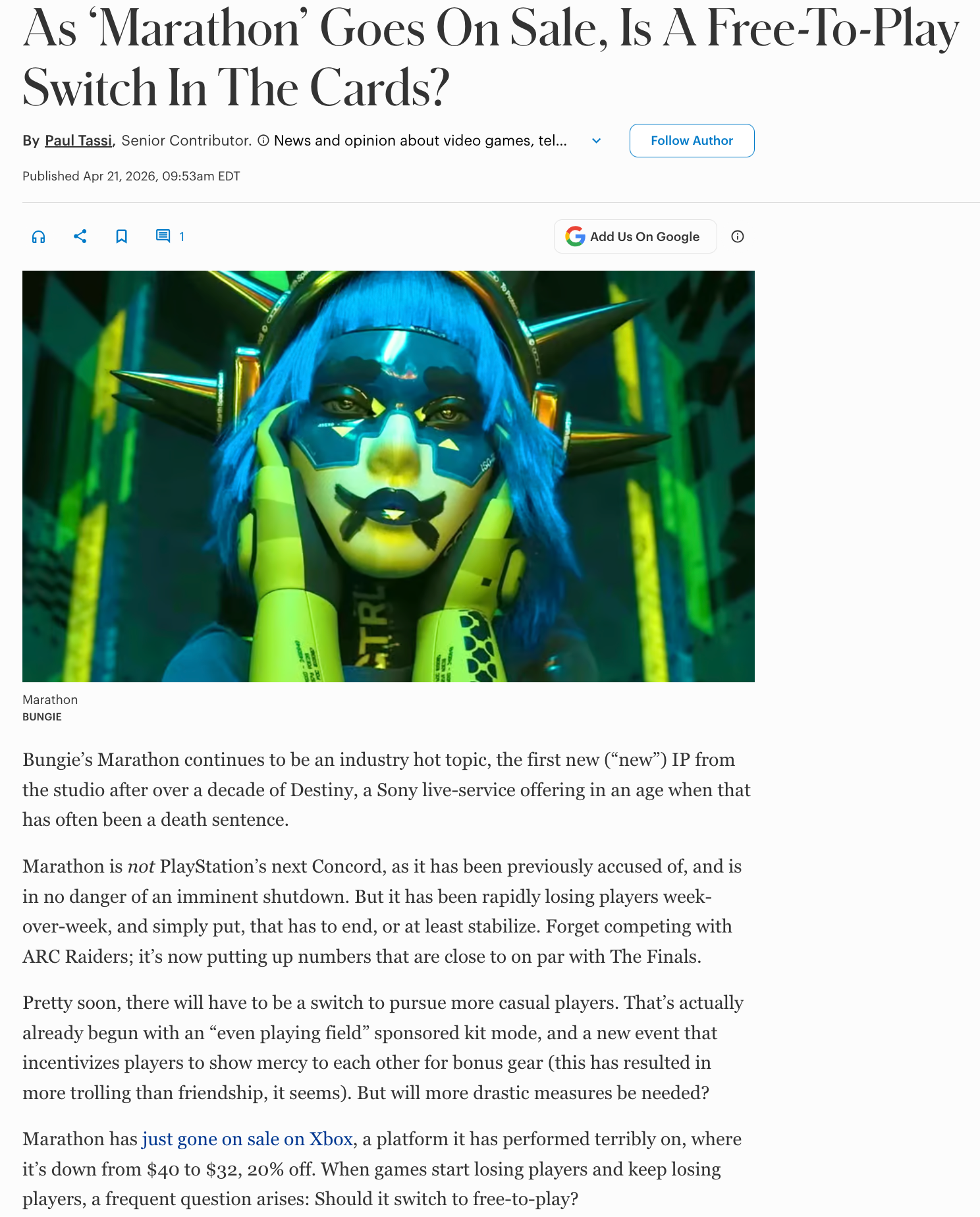 Is Marathon the least profitable AAA game since Concord?