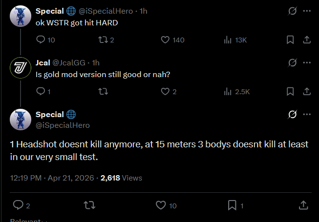 >>564205131>>564205584The way to fix snipers is give weapons a sort of point loadout system OR make a true "Primary" + "Secondary" weapon setup. Snipers and shotguns are Primary weapon slot only along with ARs etc. Secondaries could be all pistols, maybe SMGs with certain modifiers etc. The issue is that people wielding snipers aren't threatened even up close because they will just easily swap to something better for the range they are being pressed in. I also think there should be no sniper in the game that one shot downs on a body shot. Not sure what the headshot damage one shot break point should be though. All they need to do now is add a few more "side arm" typed weapons and implement primary and secondary weapon slots.