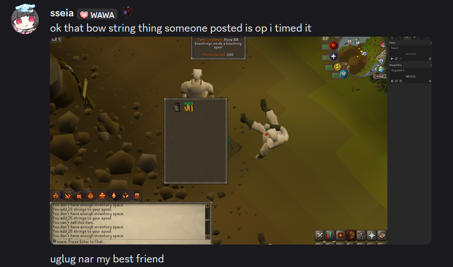 >>564287965i learned from the leagues discord if you have kandarin you can just take your spool to a zogre flesh eaters npc and buy bow strings from them after giving them a reciclyms balm
