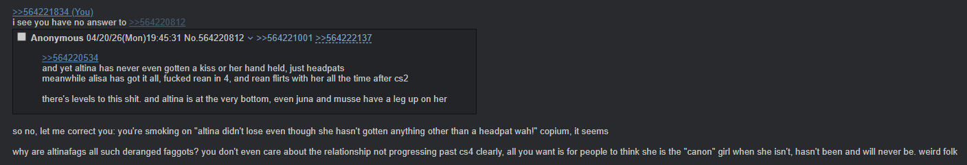 see? any mention that alisa has been the only "main girl" and they get like this