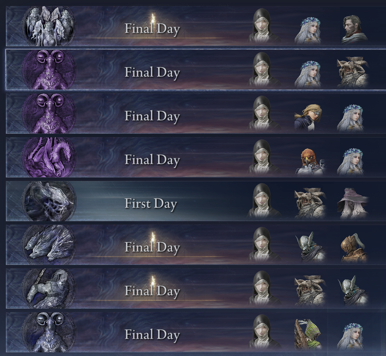 >>564320031That is actually pretty useful. I might do it if I am still unsure about my choices paying off.I also realize I should've put the ashes who are +9 here so you guys can gauge it better.CuckoosRedmanesLeyndellMarionettesAvionettesMausoleums The ones I am indecisive on spending the +10 glovewort are the avionettes (did the best job on mohg so far) and also the leyndell ones surprisingly (fare pretty well against humanois and tend to have great survivability, even if they do suck ass aside from guard counters)