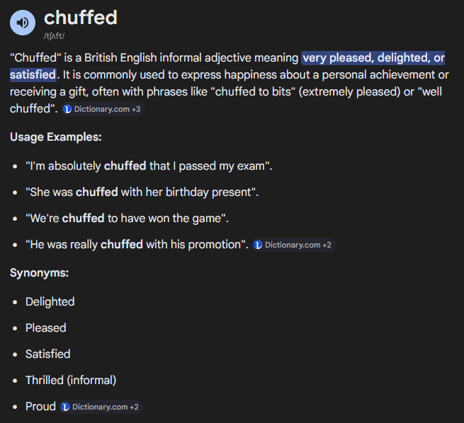 >>564322321I've really only heard the pleased variety of what chuffed means, never dissatisfied, I wonder where and why that meaning comes to be with you
