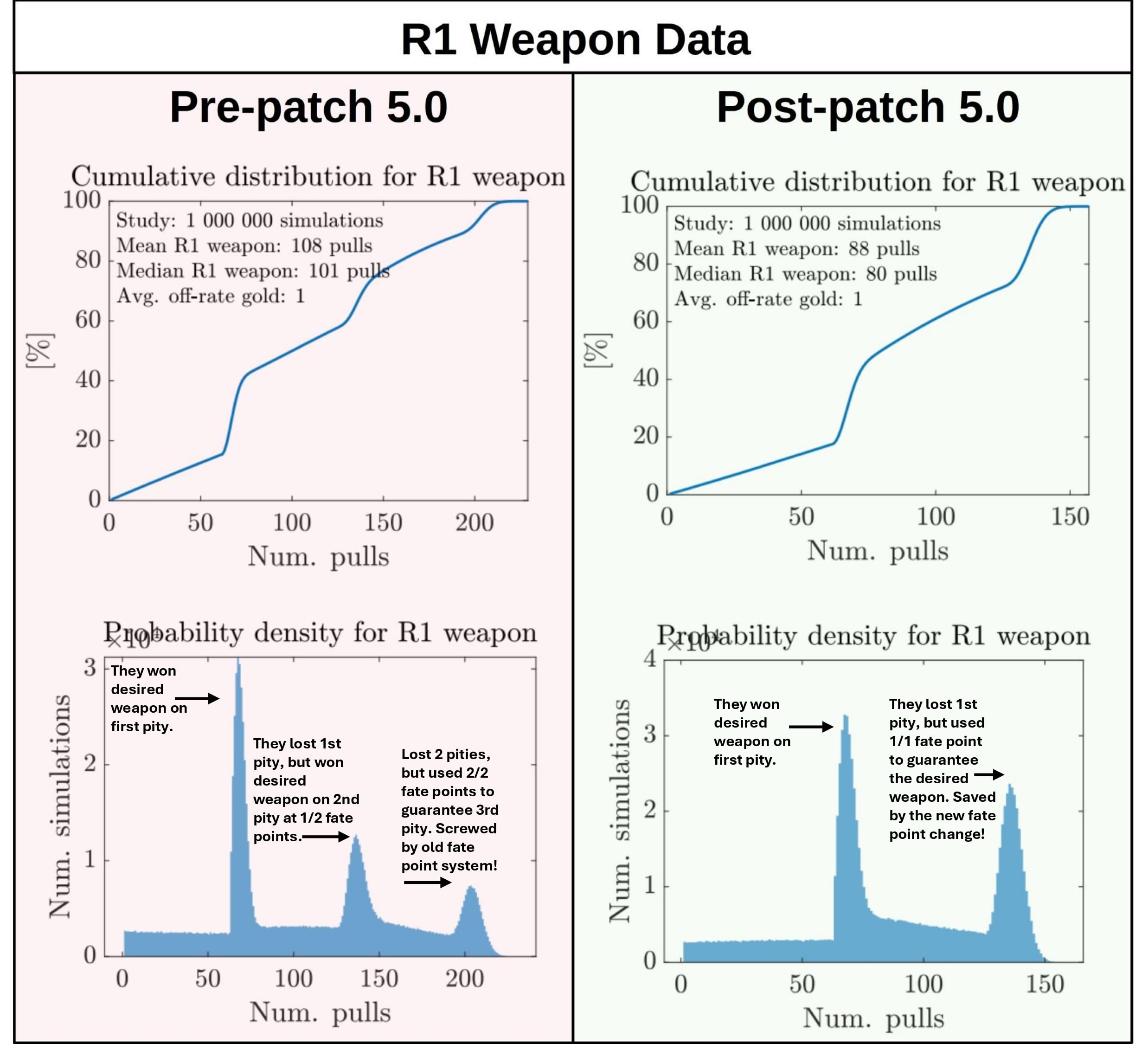 >>564259702It takes ~90 rolls for a E0S0I don't know what average for S1 is but it's 88 in genshin. It's maybe 70? In HSR? idk but that would be 160 rolls for E0S1.HSR releases 17 5*s in a year. Last year they gave 2 away so that's 15 E0S1s you'll roll + 1 S1 for the free character (Archer was free E0S1 basically).That's 2470 rolls you'll need to get. HSR gives ~940 a year + 10% rebate that's 1030 rolls. That's 1440 rolls you need to buy in a year. Welkin is ~245 rolls a year with 13 welkins aka $65. Rest is 1200 rolls.Basically you need to buy ~135 rolls every patch to get E0S1 for every 5* released.