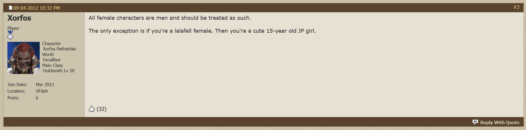 >>564280881Why are other female races so rude to femezen? I think they look nice myself.