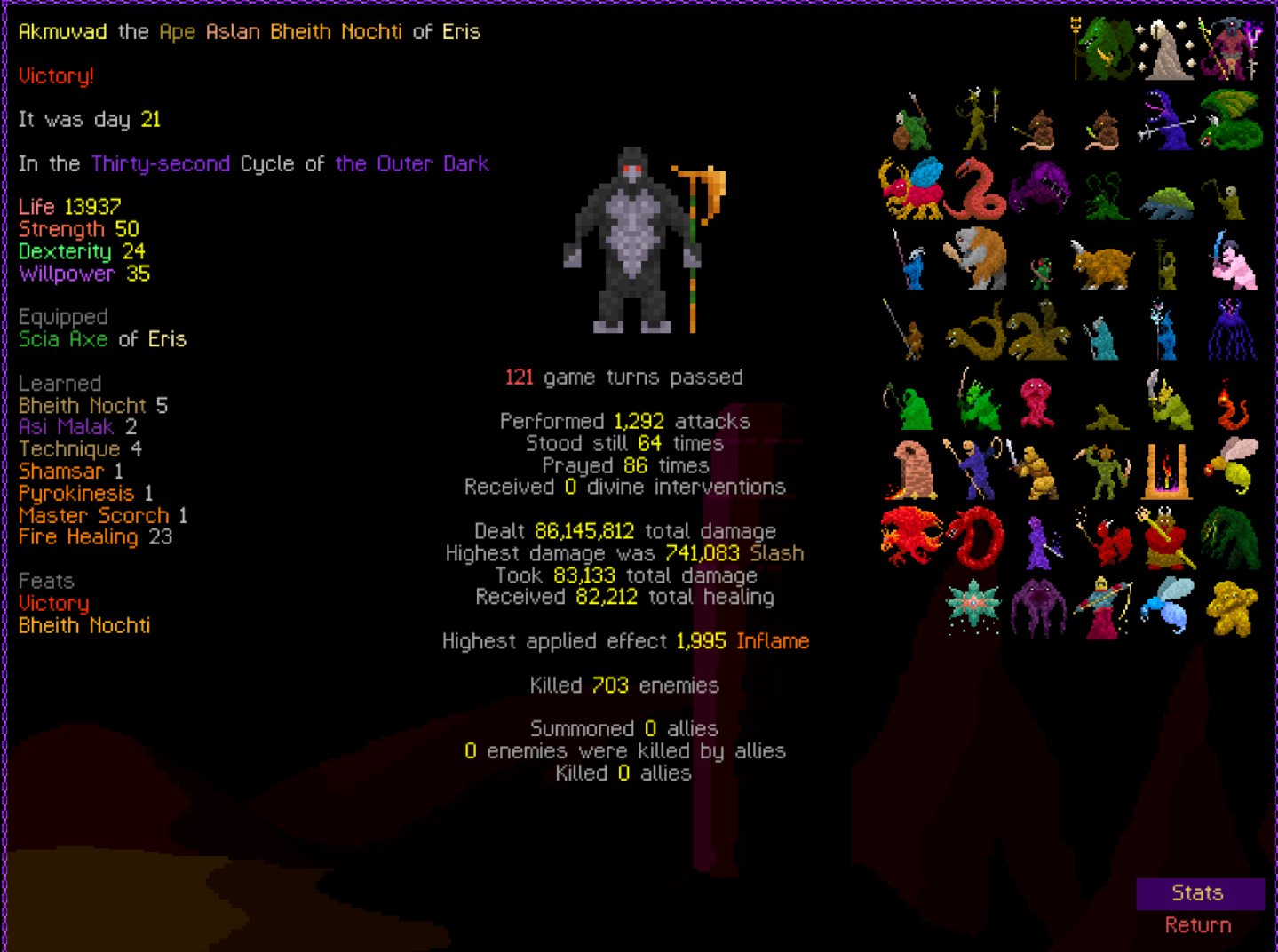 Previous thread: >>562466987 Featured game by thumbnail: Path of Achra>Are mystery dungeon games allowed in this thread?Generally yes, most mystery dungeon games(Shiren the Wanderer, Pokemon Mystery Dungeon, Etrian Mystery Dungeon, etc.) can be considered roguelikes>Is Elin/Elona allowed?Yes, they are roguelikes. Please do not post your Little Sister farms>Is Dwarf Fortress allowed?If it's adventure mode, yes. But adventure mode is boring. /tg/ has a general for fortress mode playthroughs but you can share here too!>FAQhttps://l.idrix.fr/J7sOv>What to Playhttps://l.idrix.fr/eYNOh>Individual Game Pastashttps://l.idrix.fr/wXd8t>Roguelike Archive (Collection of pretty much every free roguelike there is)https://archive.org/details/ArchiveRL.7z>/rlg/'s "most popular" Cataclysm: DDA forkhttps://github.com/cataclysmbnteam/Cataclysm-BN/releases>RogueBasin News15 Apr 2026 - ROGUE-FP v3.11 released - https://store.steampowered.com/app/2343160/ROGUEFP/ 14 Apr 2026 - Dragonwake v4 "Alpha" released - https://kalineh.github.io/dragonwake-pages/ 11 Apr 2026 - ZMAngband IV.11 released - https://jose-machete.itch.io/zmangband-med5 Apr 2026 - MudGate 1.0.3 released - https://www.mudgate.com/2 Apr 2026 - Soulash 2 v0.9.23 "Rebellion" Steam - https://store.steampowered.com/news/app/2399160/view/53775725047369010931 Mar 2026 - Overworld v2.9 released - https://redasteroidgames.com/overworld/31 Mar 2026 - Wizard School Dropout Preview 14 "Youth Against Fascism" released - https://weirdfellows.itch.io/wizard-school-dropout/31 Mar 2026 - Tales of Kathay v0.14.0 Open Alpha released - https://jouwee.itch.io/tales-of-kathay 30 Mar 2026 - UnReal World v3.88 released - https://www.unrealworld.fi/30 Mar 2026 - Shamogu v1.5.0 released - https://anaseto.codeberg.page/games/shamogu/ >/rlg/'s shared DCSS online accountUser: rlgrobinPassword: ownfault (or "robin" on Xtahua)Roguelike Servershttps://angband.live/ (Angband and variants)